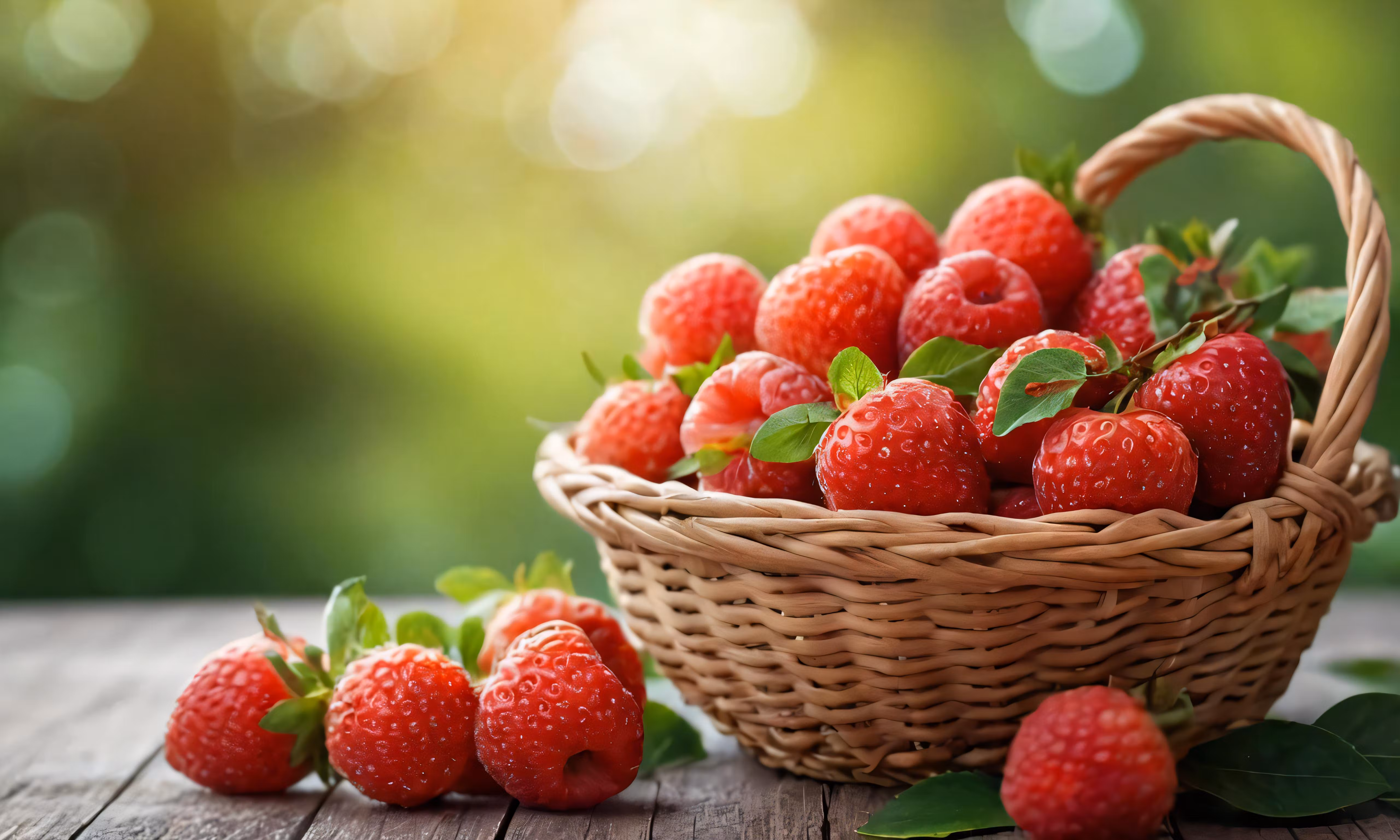 High resolution picture, free to use, a basket full of strawberries is laying on the ground