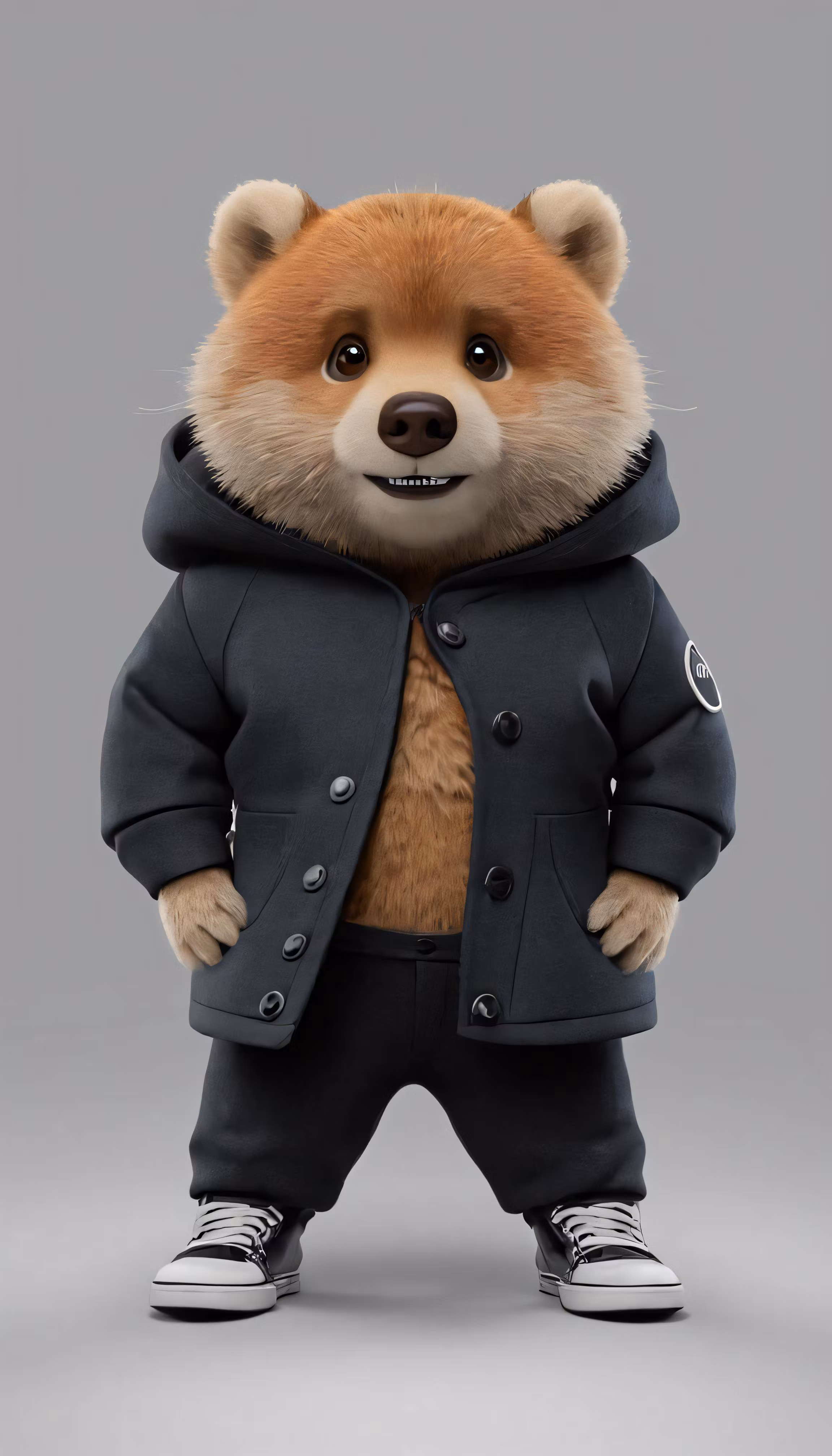 High resolution picture, free to use, a bear wearing an all black coat