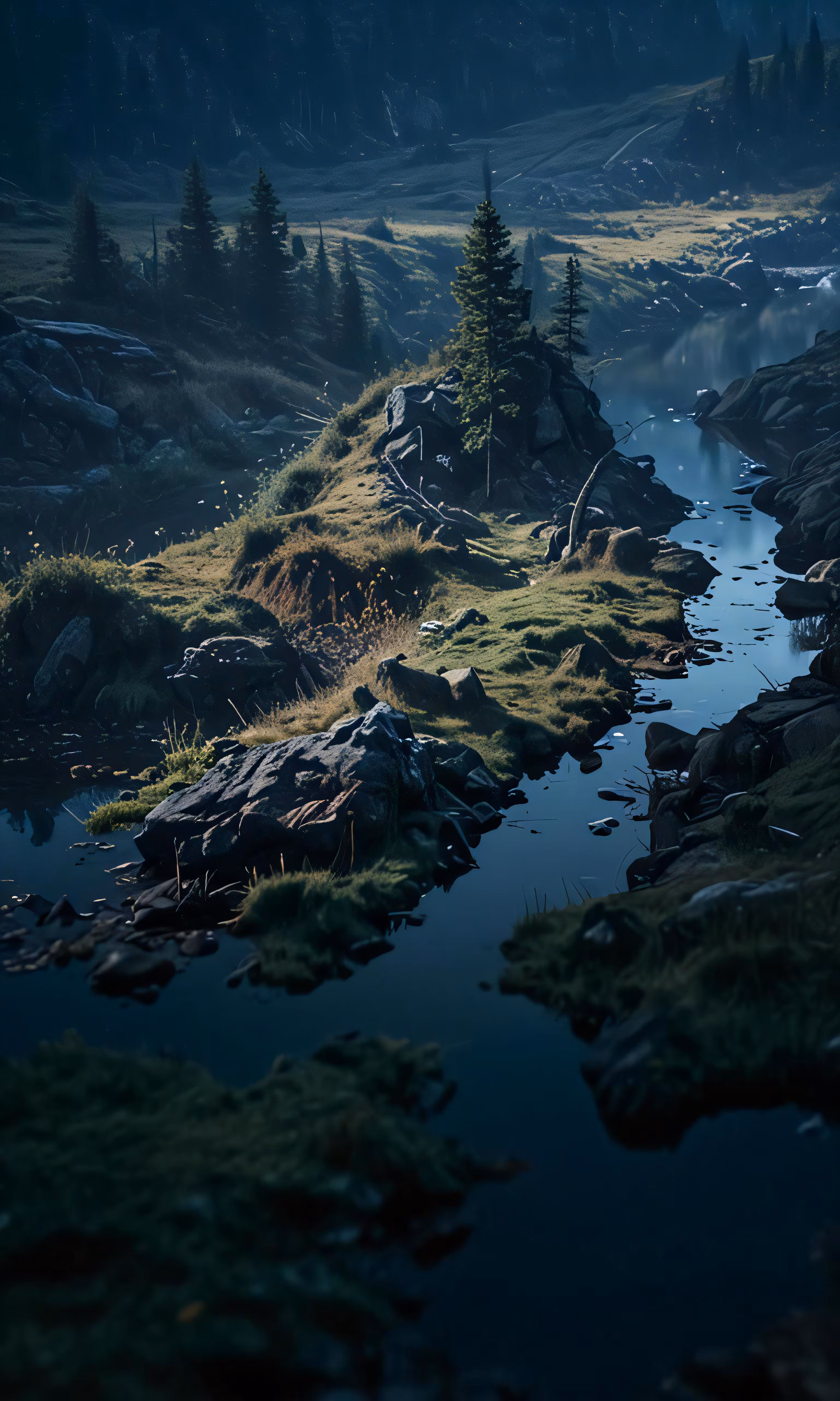 High resolution picture, free to use, a beautiful landscape that depicts a river and forest