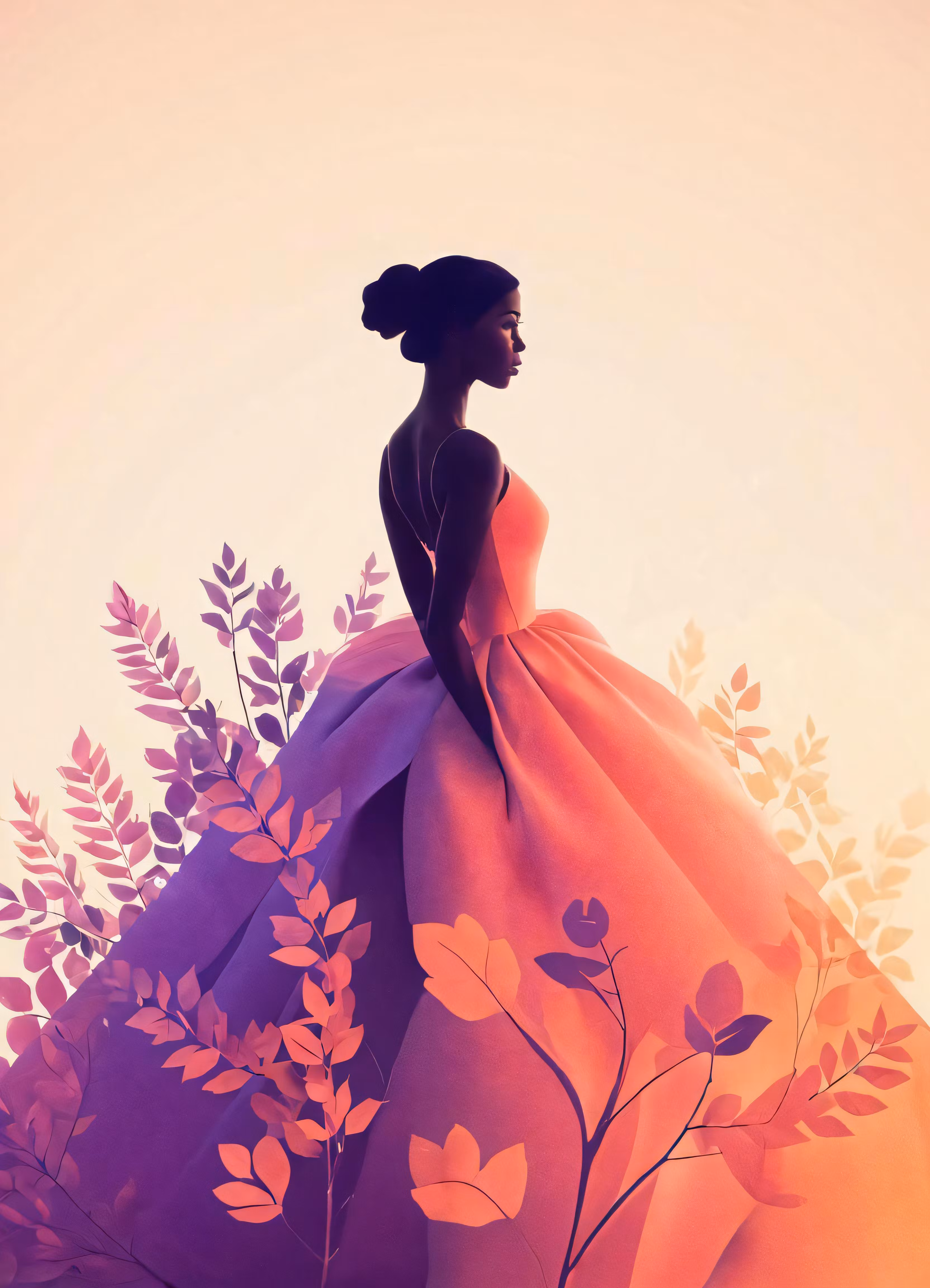 High resolution picture, free to use, a beautiful woman in a dress surrounded by leaves