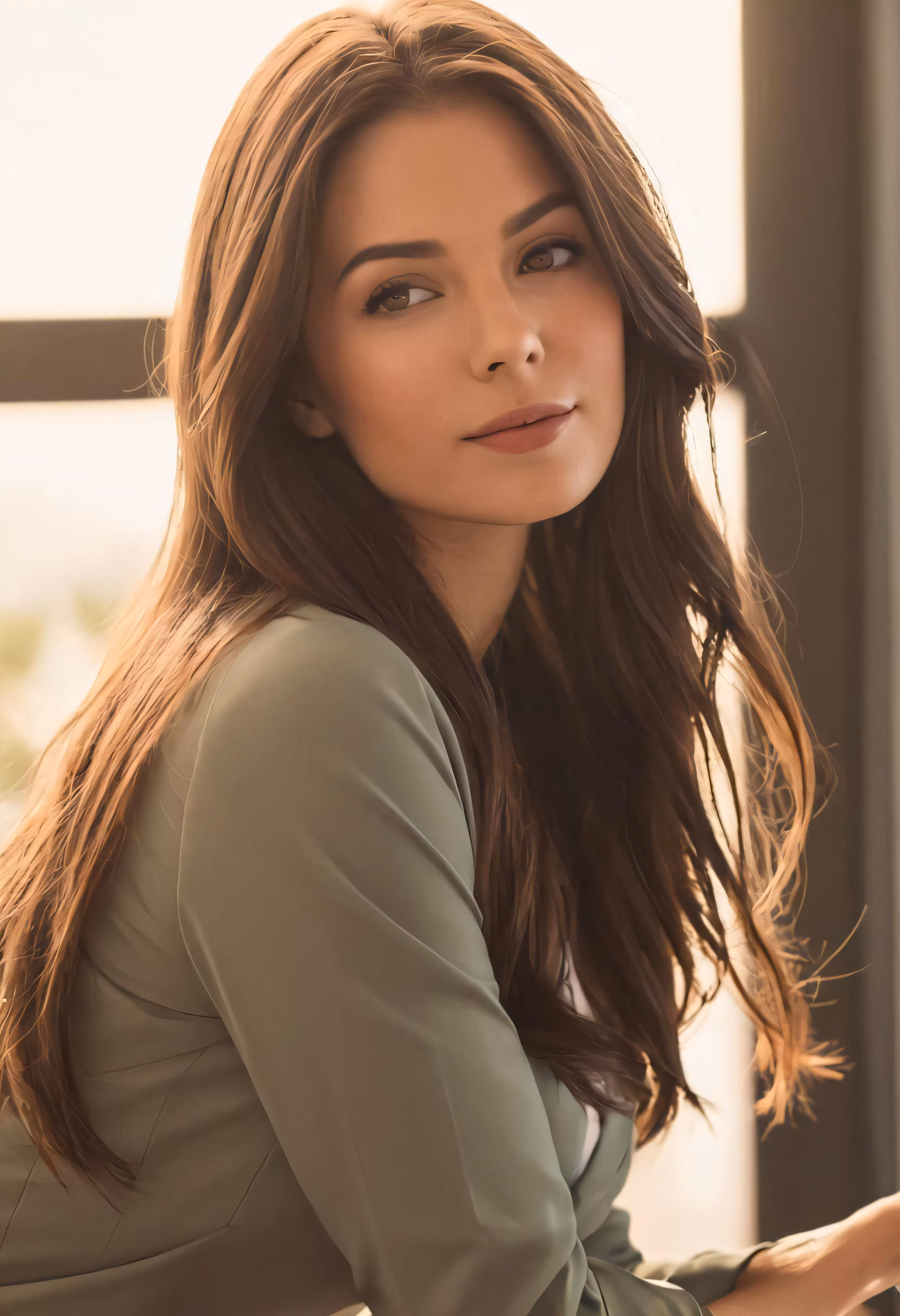 High resolution picture, free to use, a beautiful woman leaning against a window and smiling