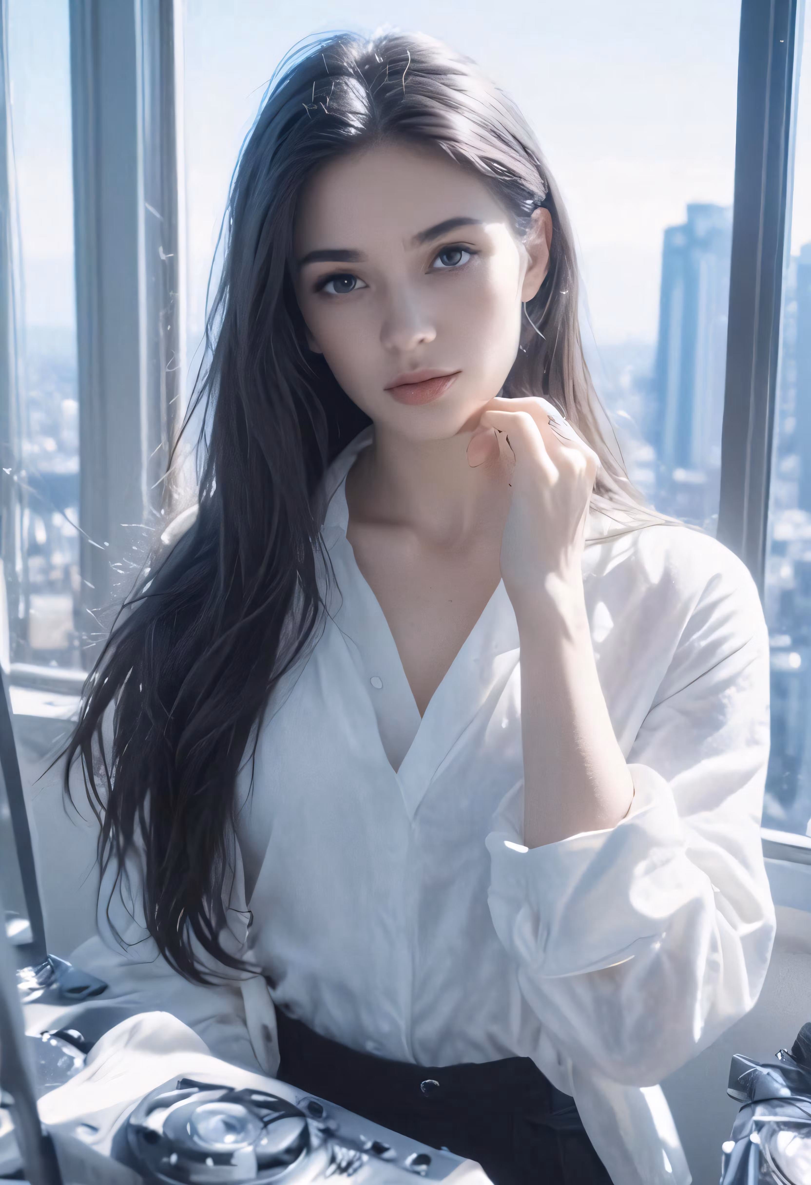 High resolution picture, free to use, a beautiful woman posing for the camera in front of some glass