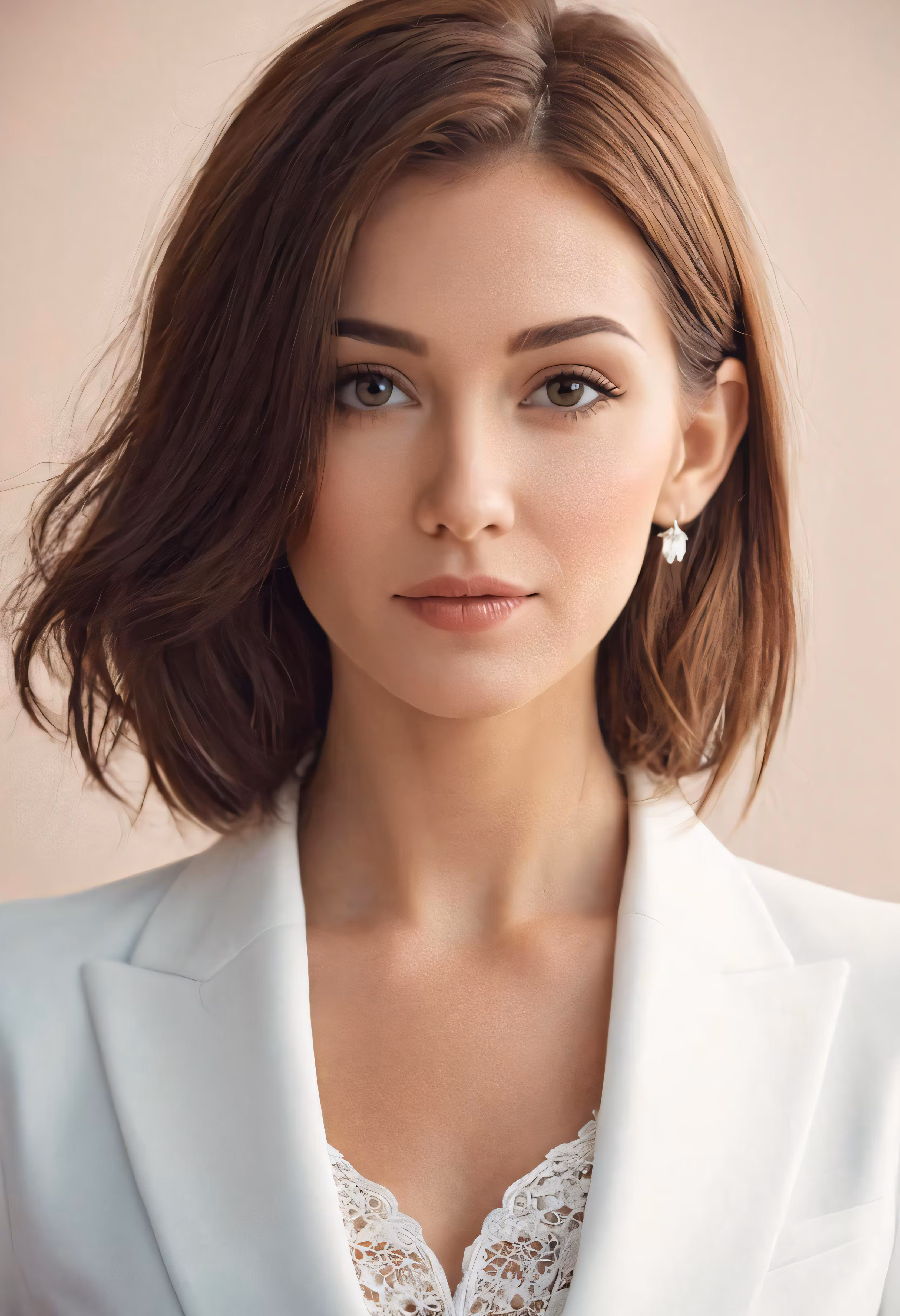 High resolution picture, free to use, a beautiful young woman in a white suit