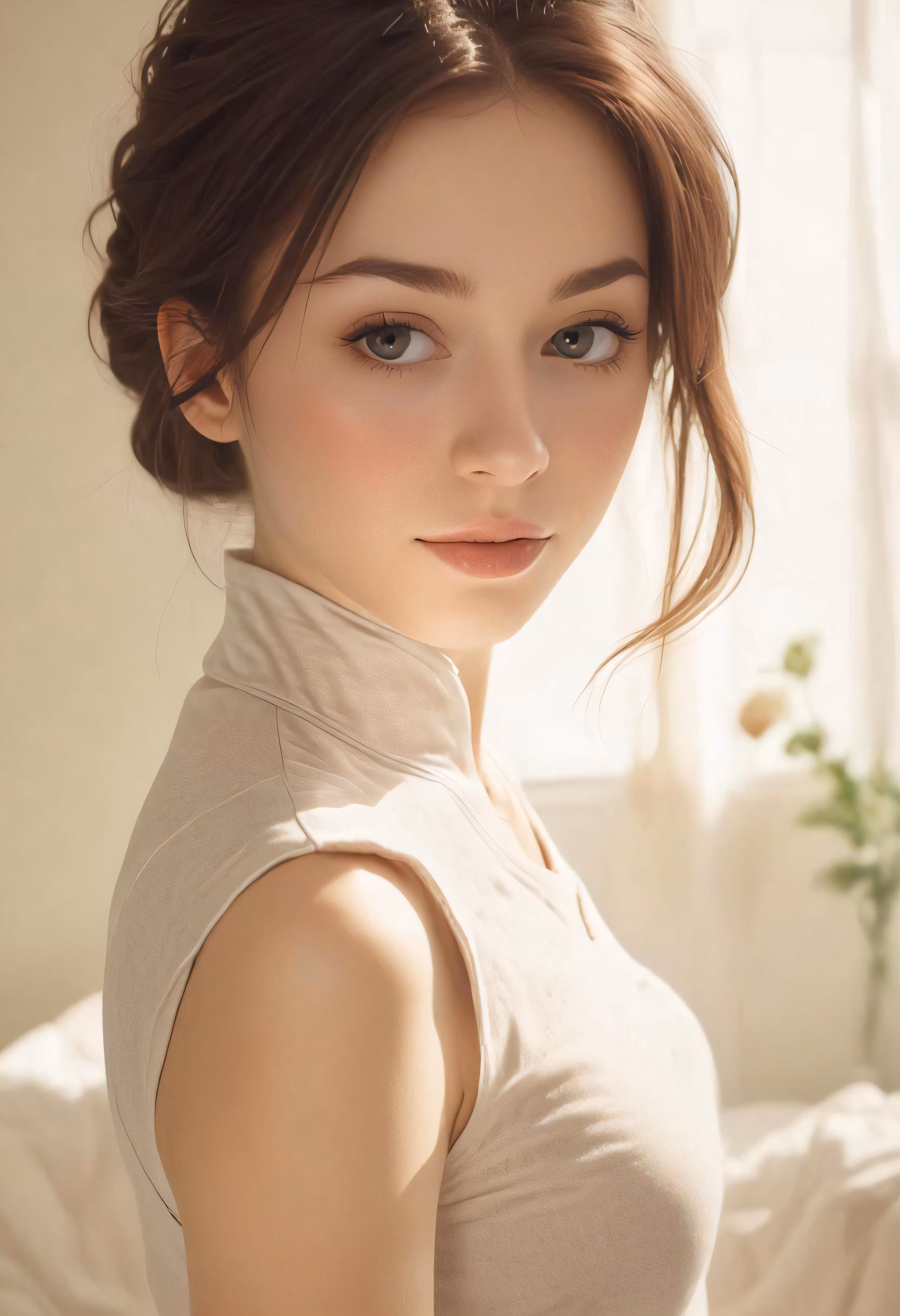 High resolution picture, free to use, a beautiful young woman in white shirt posing for a photo