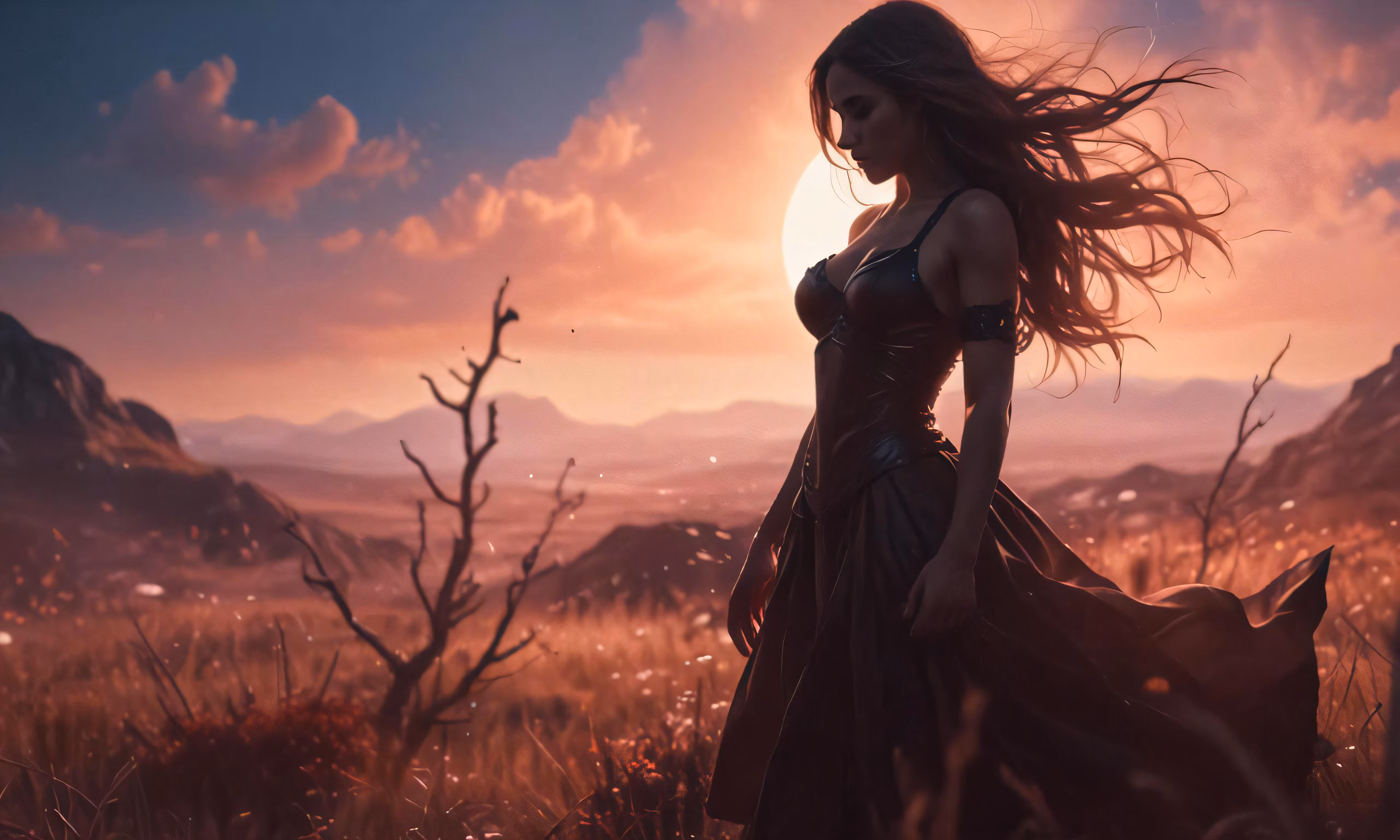 High resolution picture, free to use, a beautiful young woman standing in a field