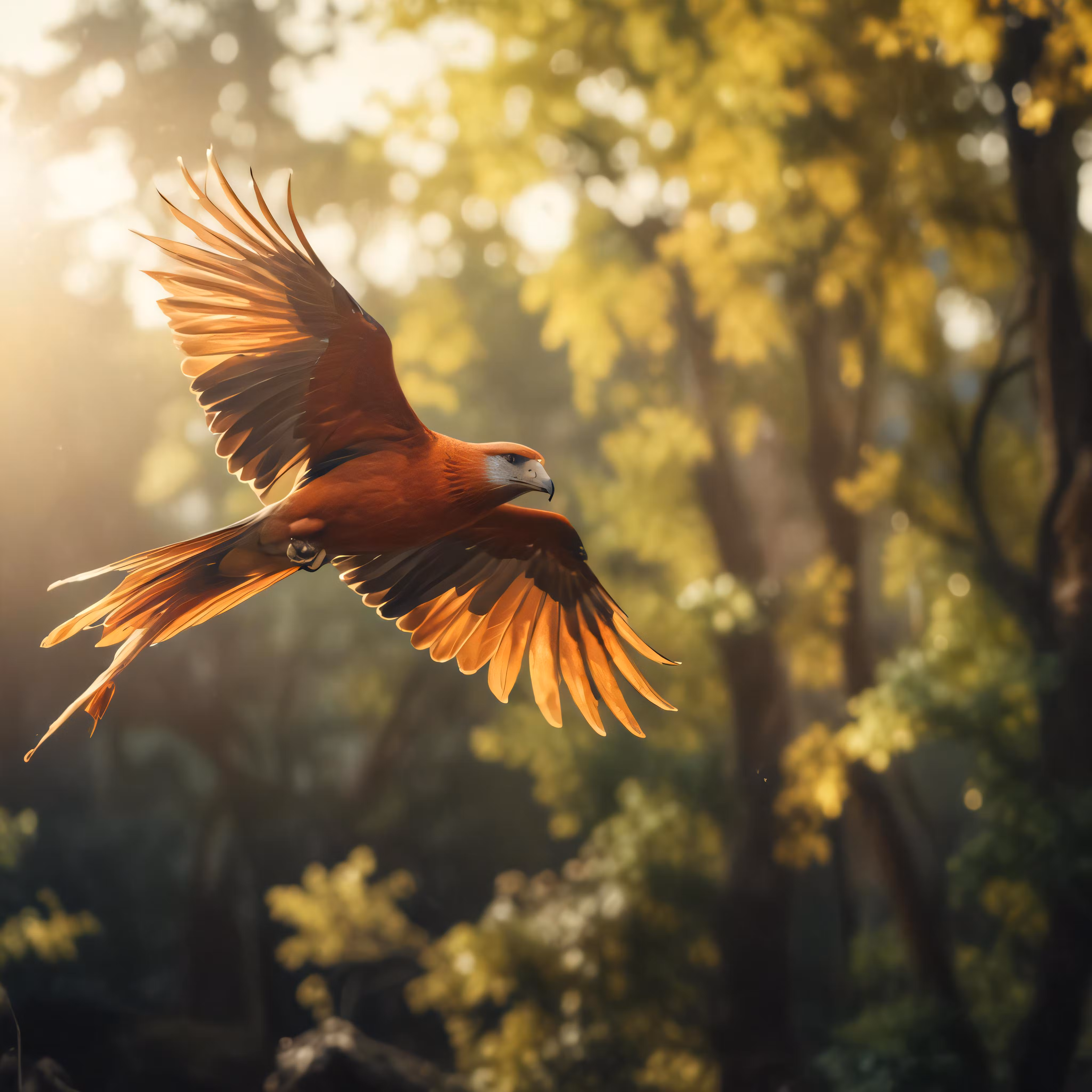 High resolution picture, free to use, a bird flying with a bright light shining on the background