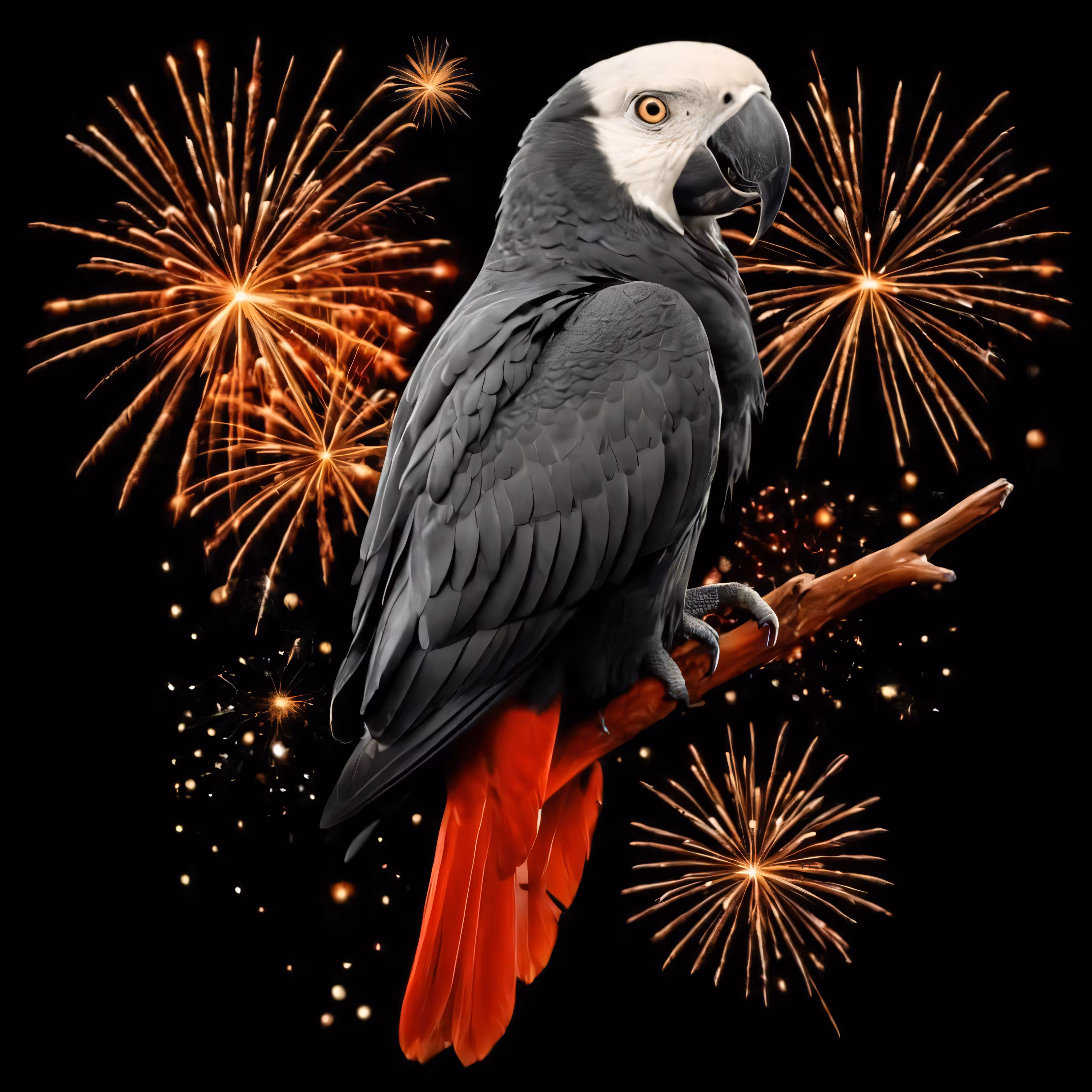 High resolution picture, free to use, a bird is sitting on a perch with fireworks