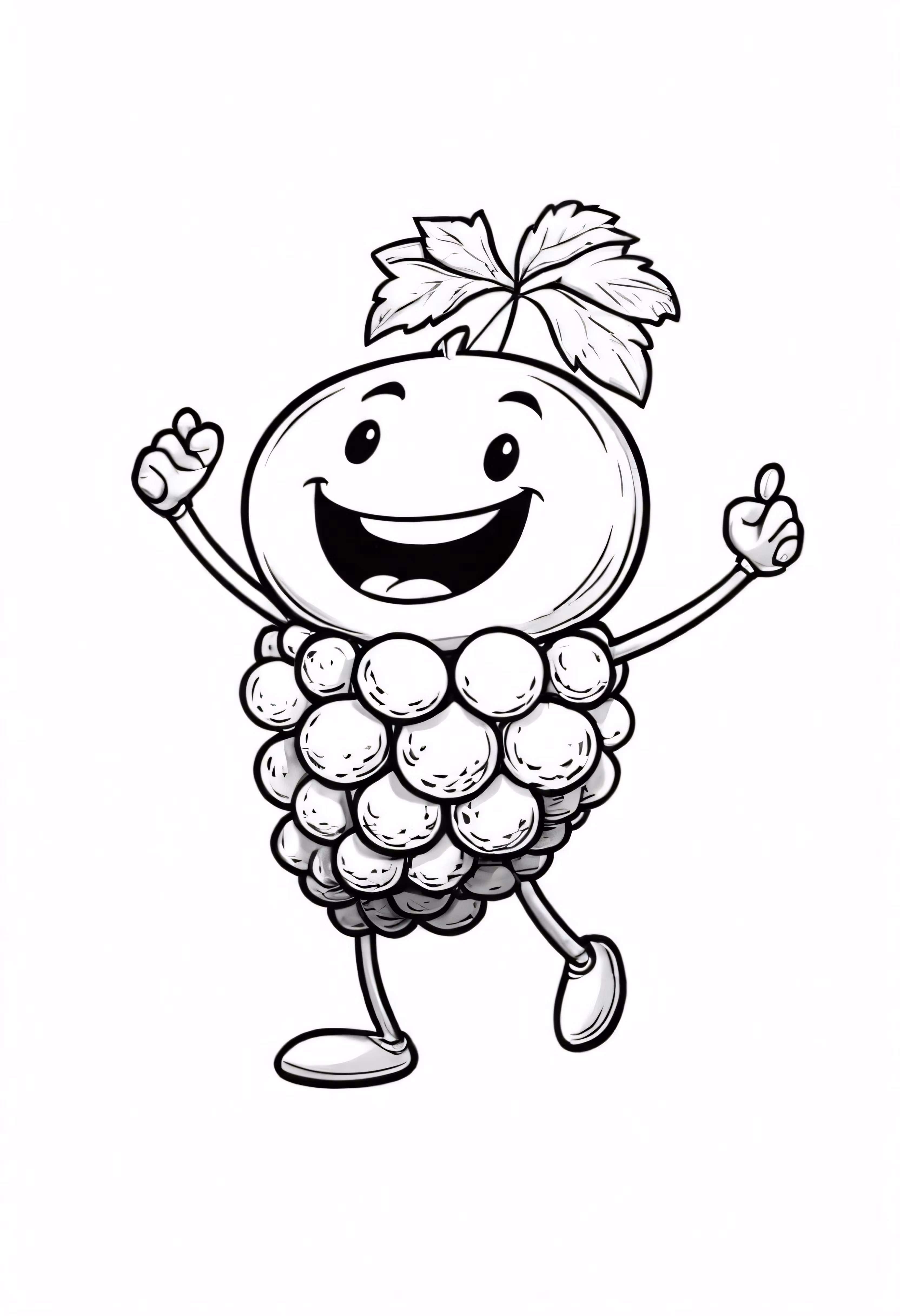 High resolution picture, free to use, a black and white cartoon of a happy grapefruit