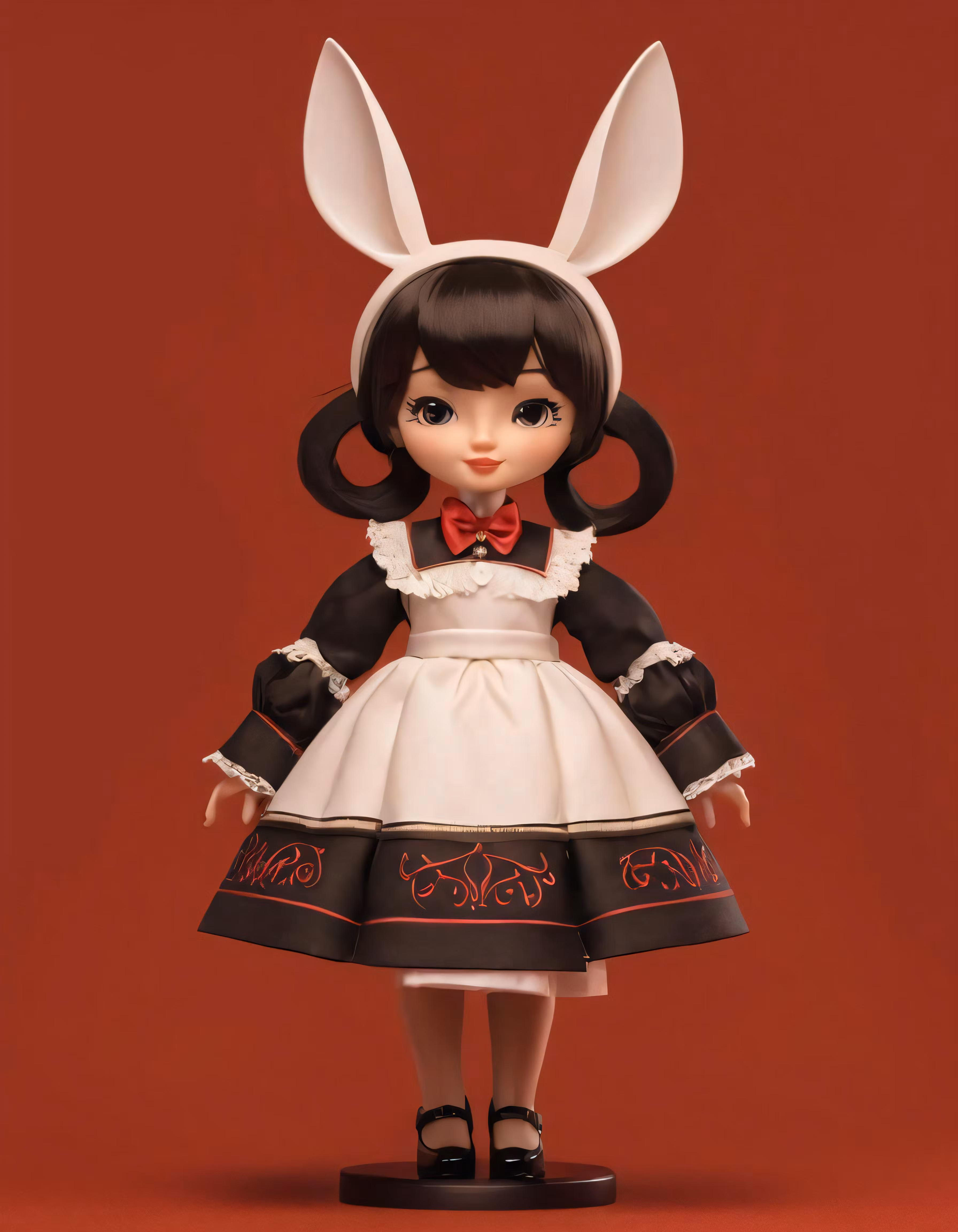 High resolution picture, free to use, a black and white doll in dress with a red background