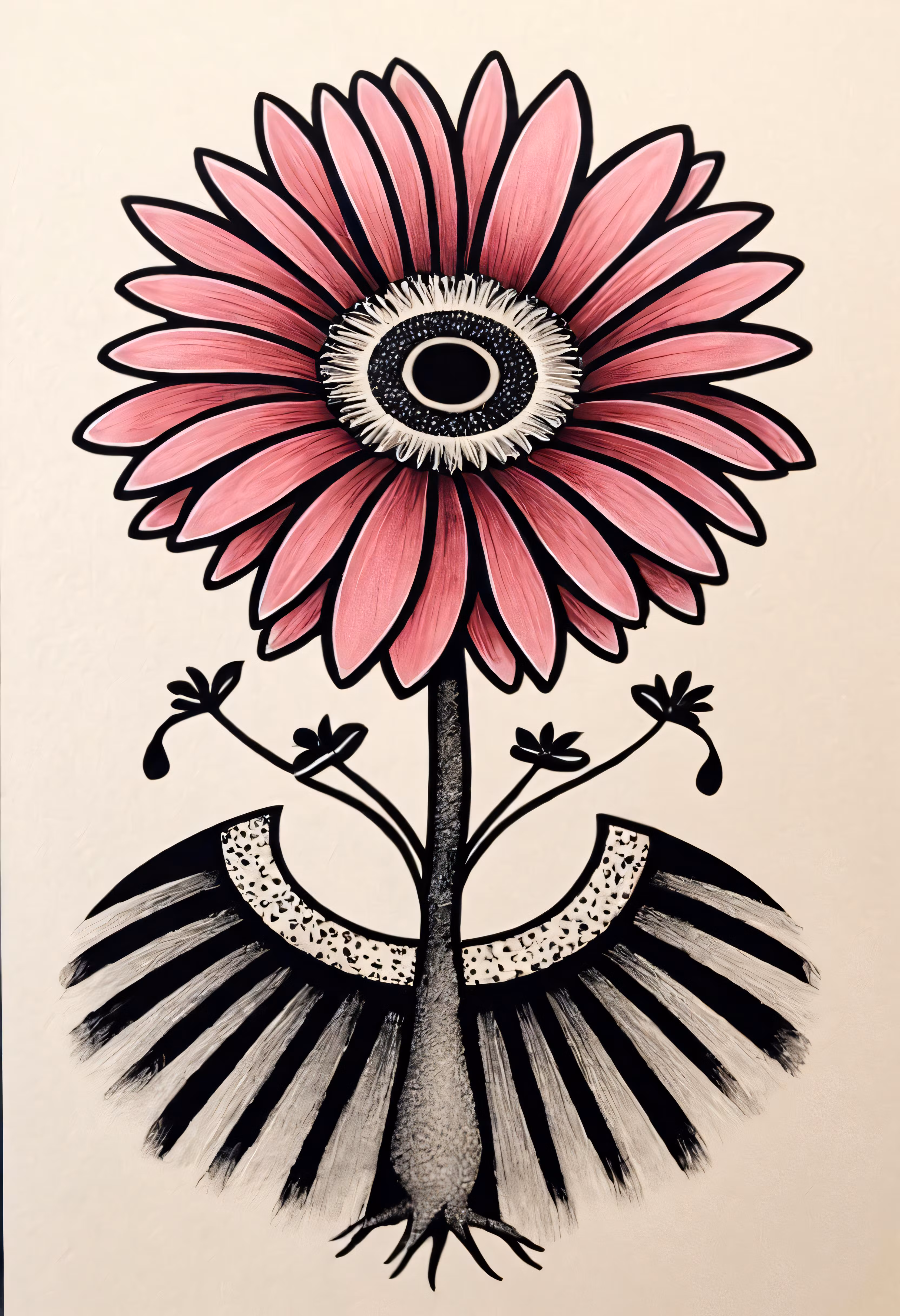 High resolution picture, free to use, a black and white drawing of a pink flower