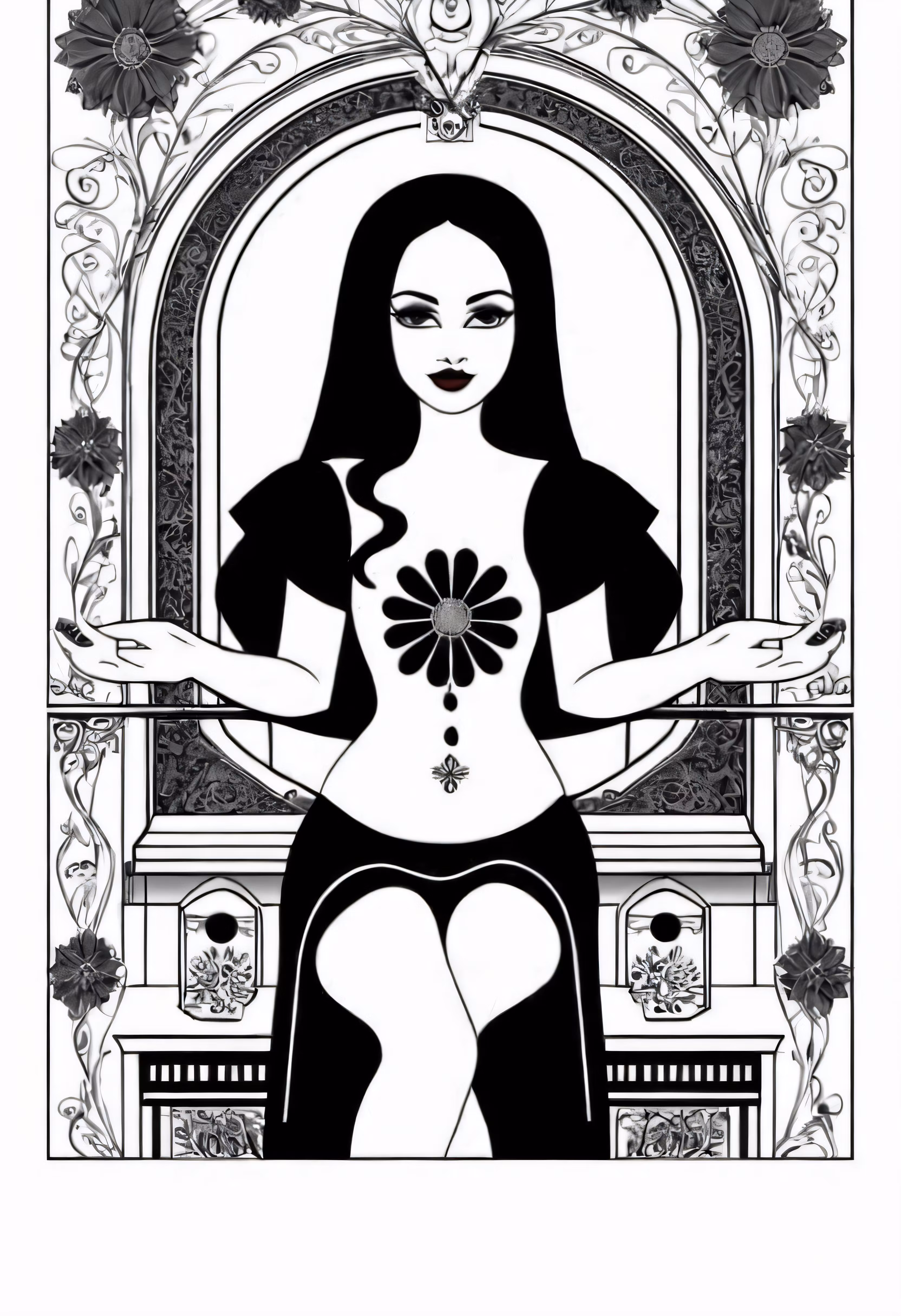 High resolution picture, free to use, a black and white illustration of a woman sitting on a chair