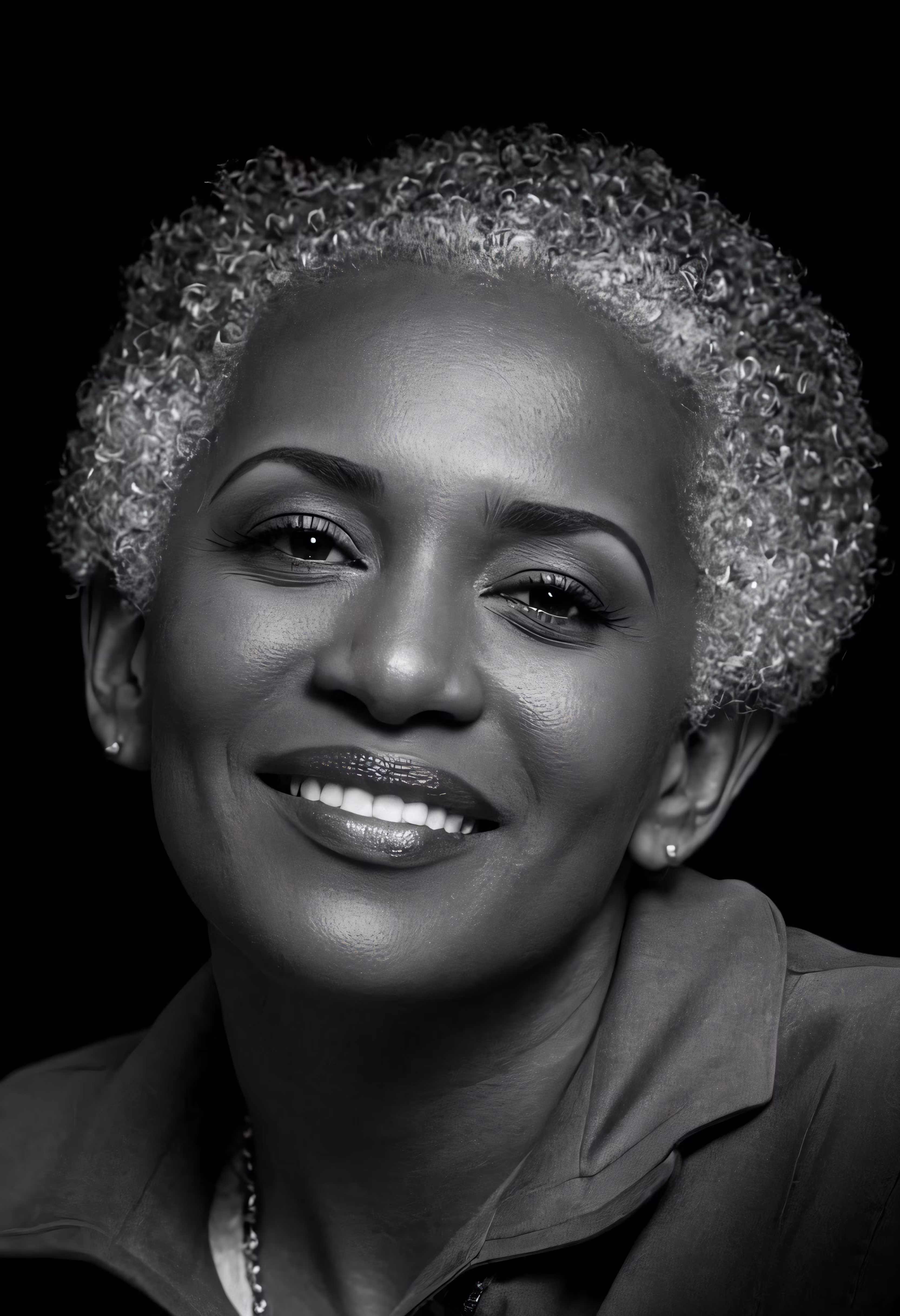 High resolution picture, free to use, a black and white image of an african american woman with a smile