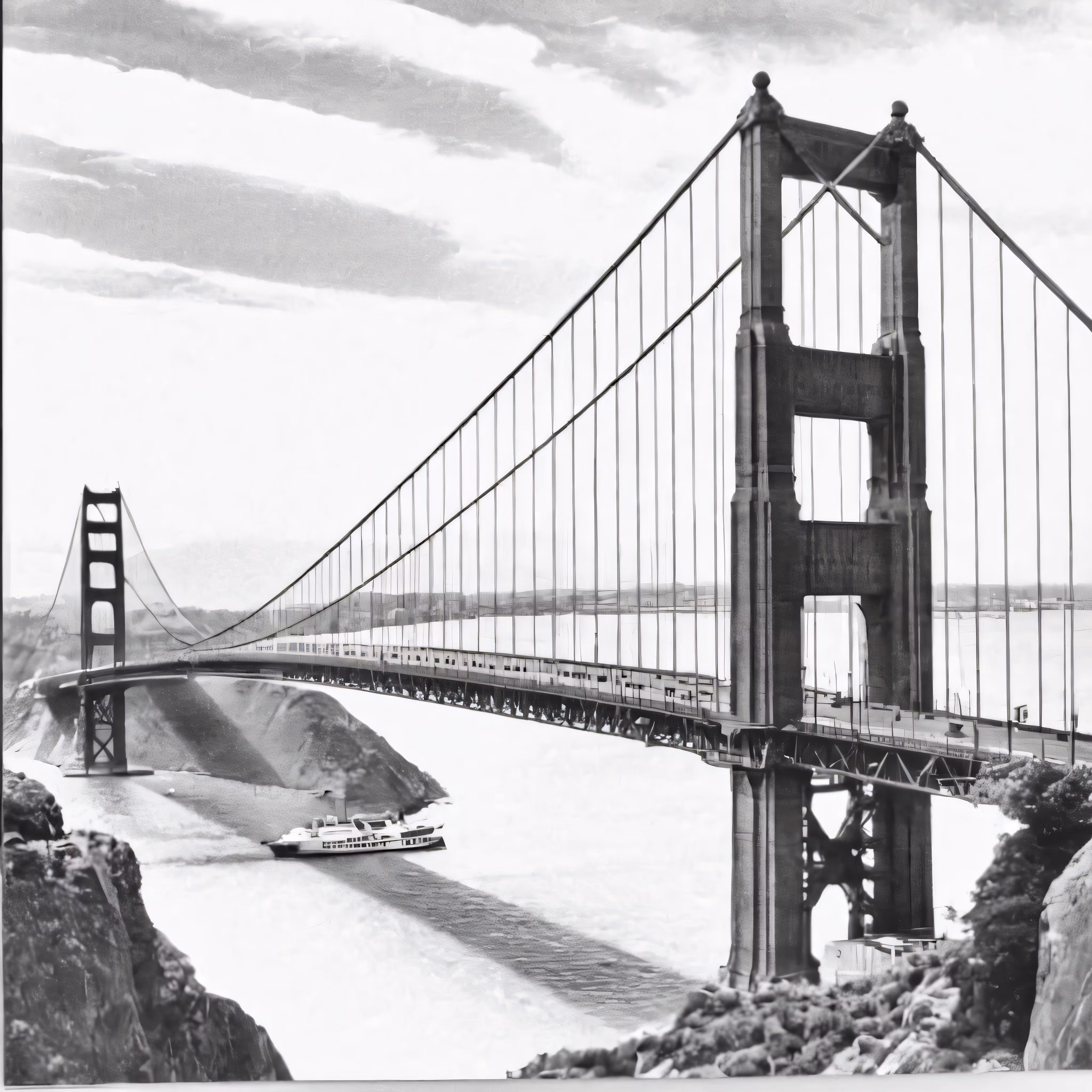 High resolution picture, free to use, a black and white image of the golden gate bridge