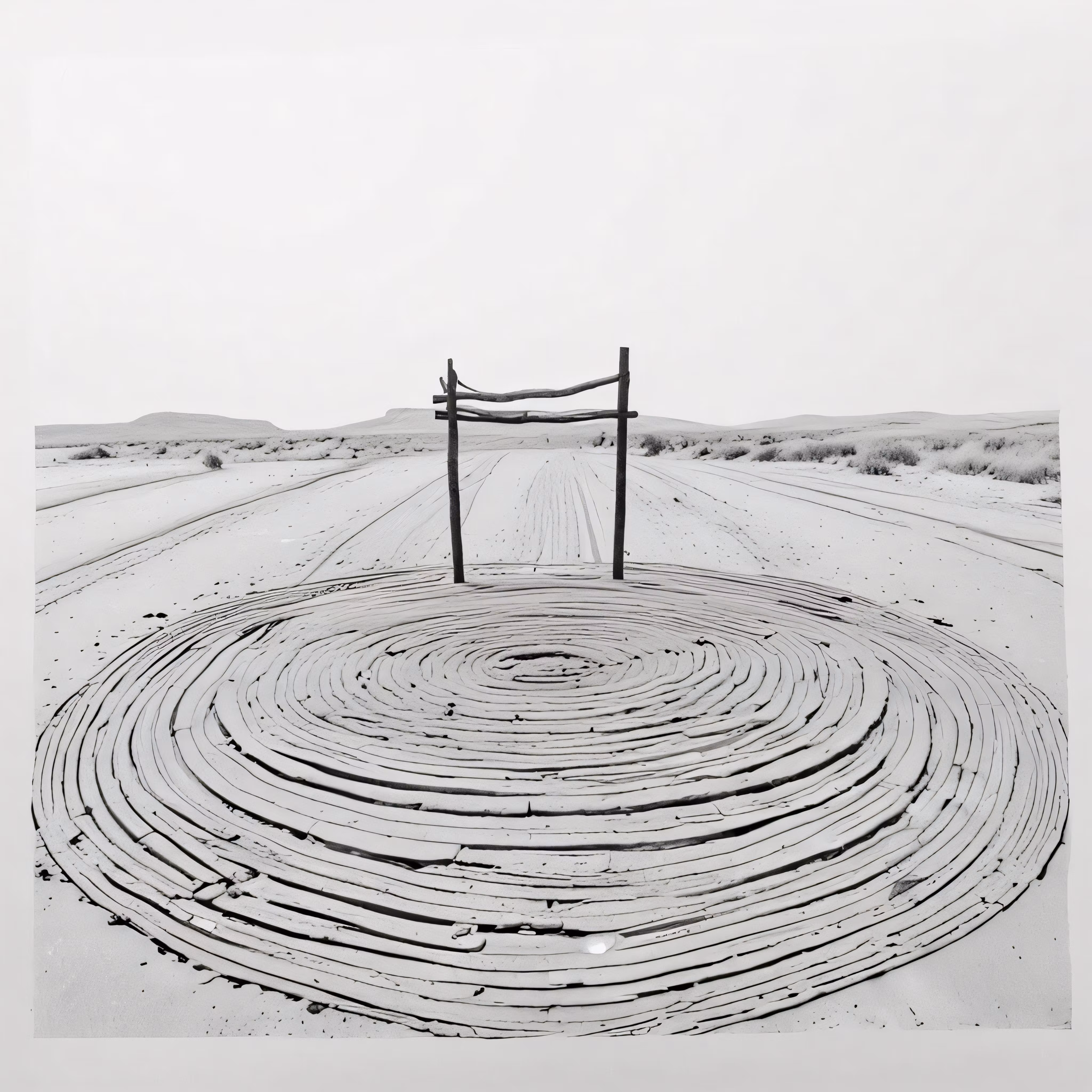 High resolution picture, free to use, a black and white photo of a circle of tracks
