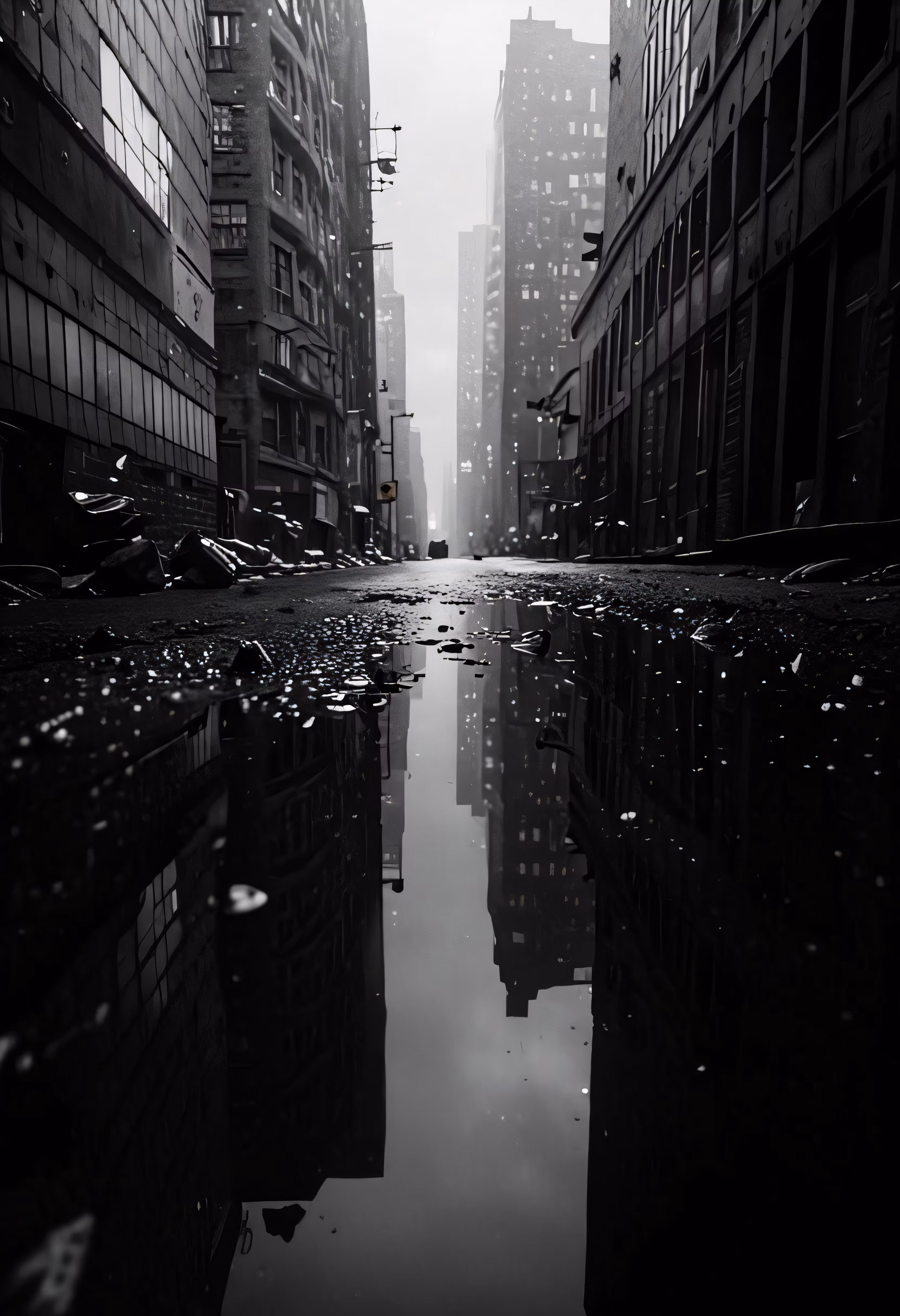 High resolution picture, free to use, a black and white photo of a city street with buildings