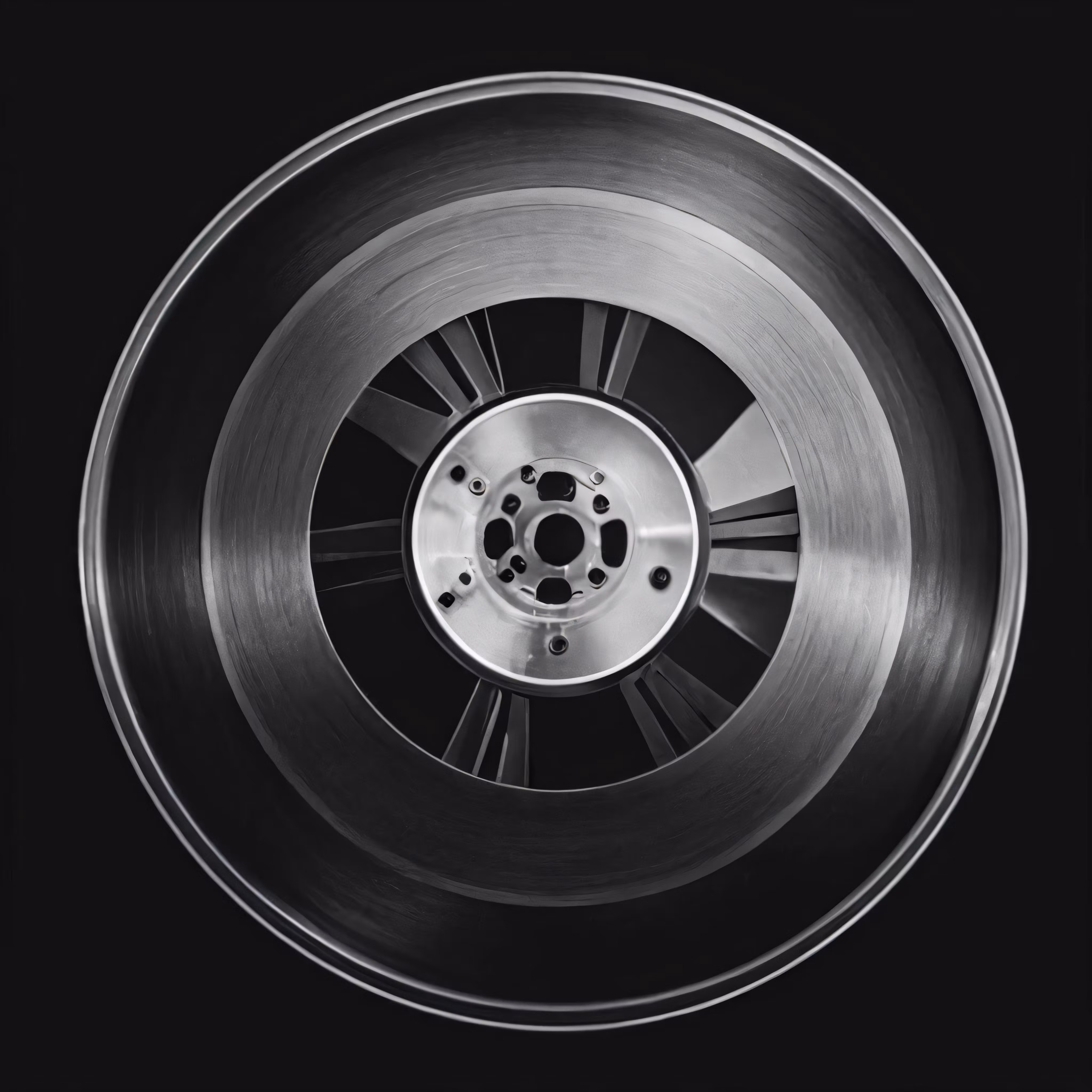 High resolution picture, free to use, a black and white photo of a wheel with spokes