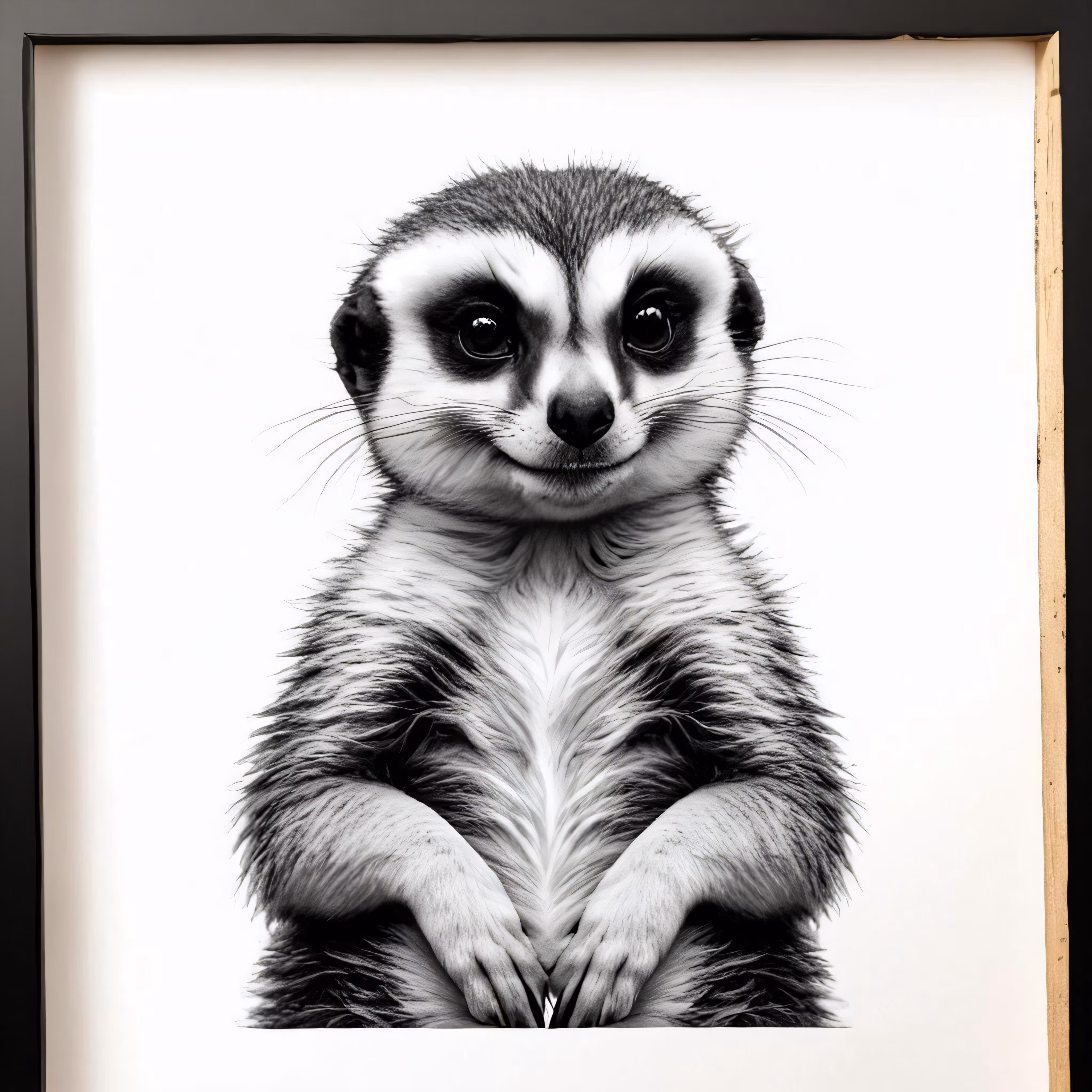 High resolution picture, free to use, a black and white print of a meerkat sitting with his feet crossed