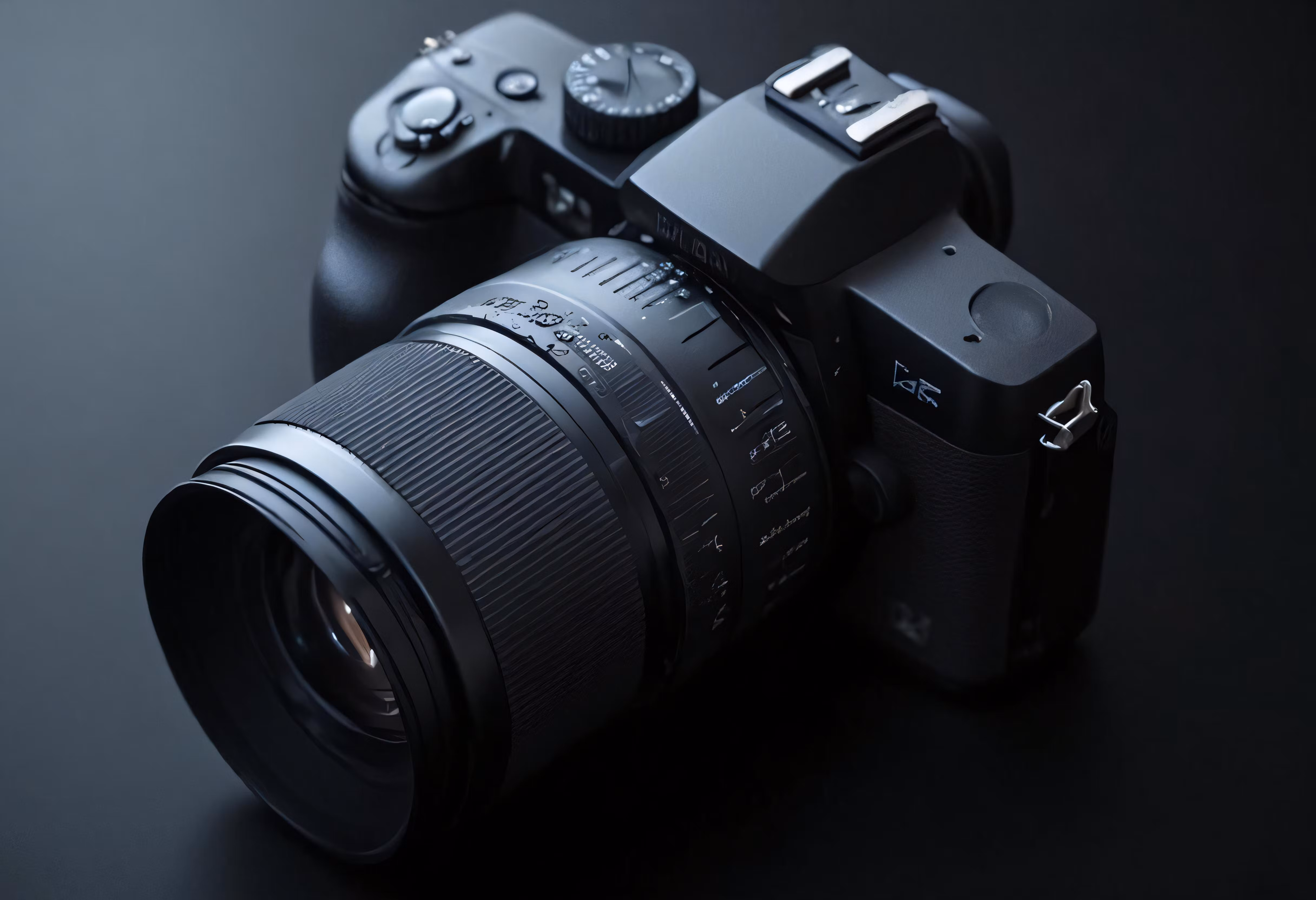 High resolution picture, free to use, a black camera and some other things on a table