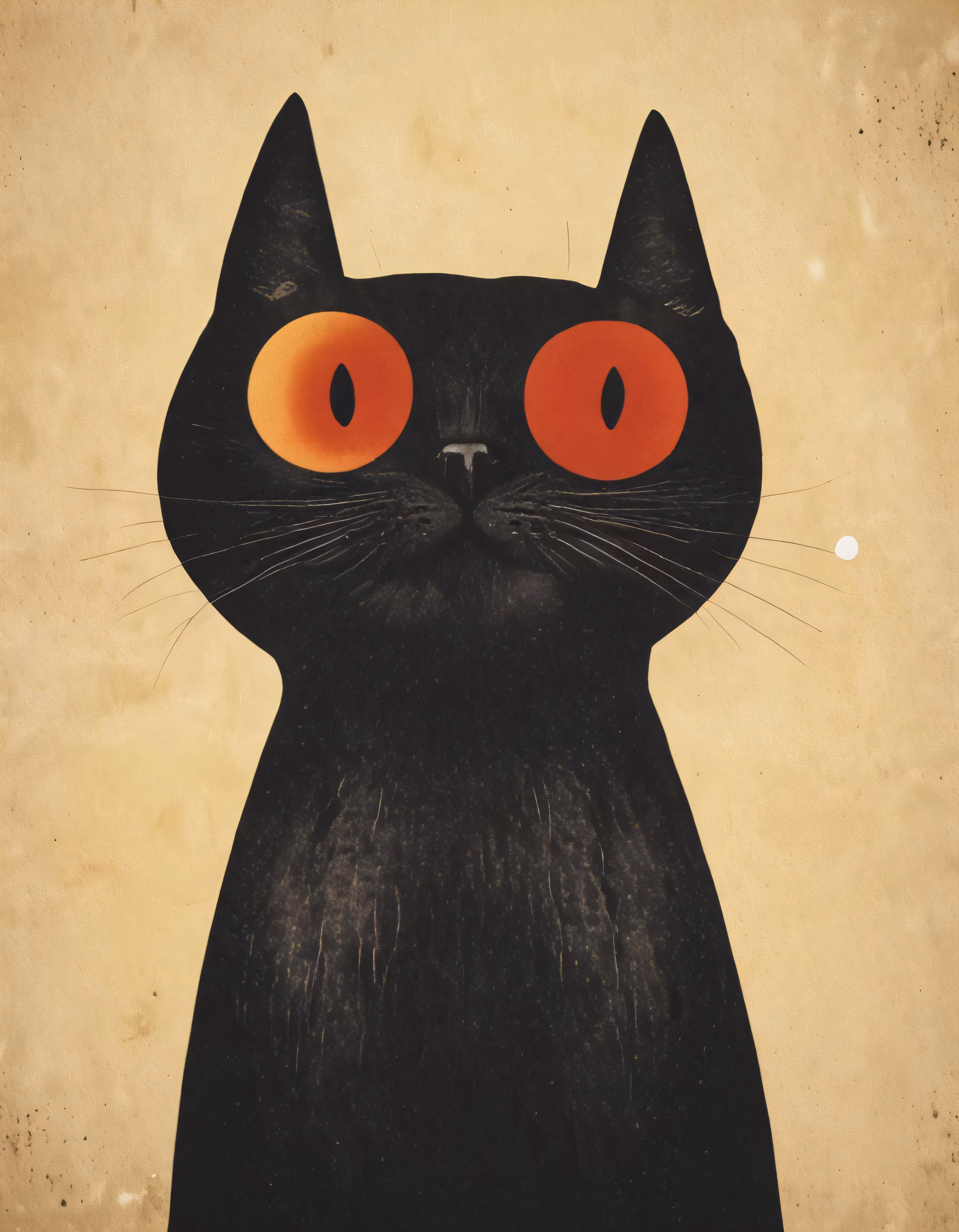High resolution picture, free to use, a black cat with red eyes on a neutral background