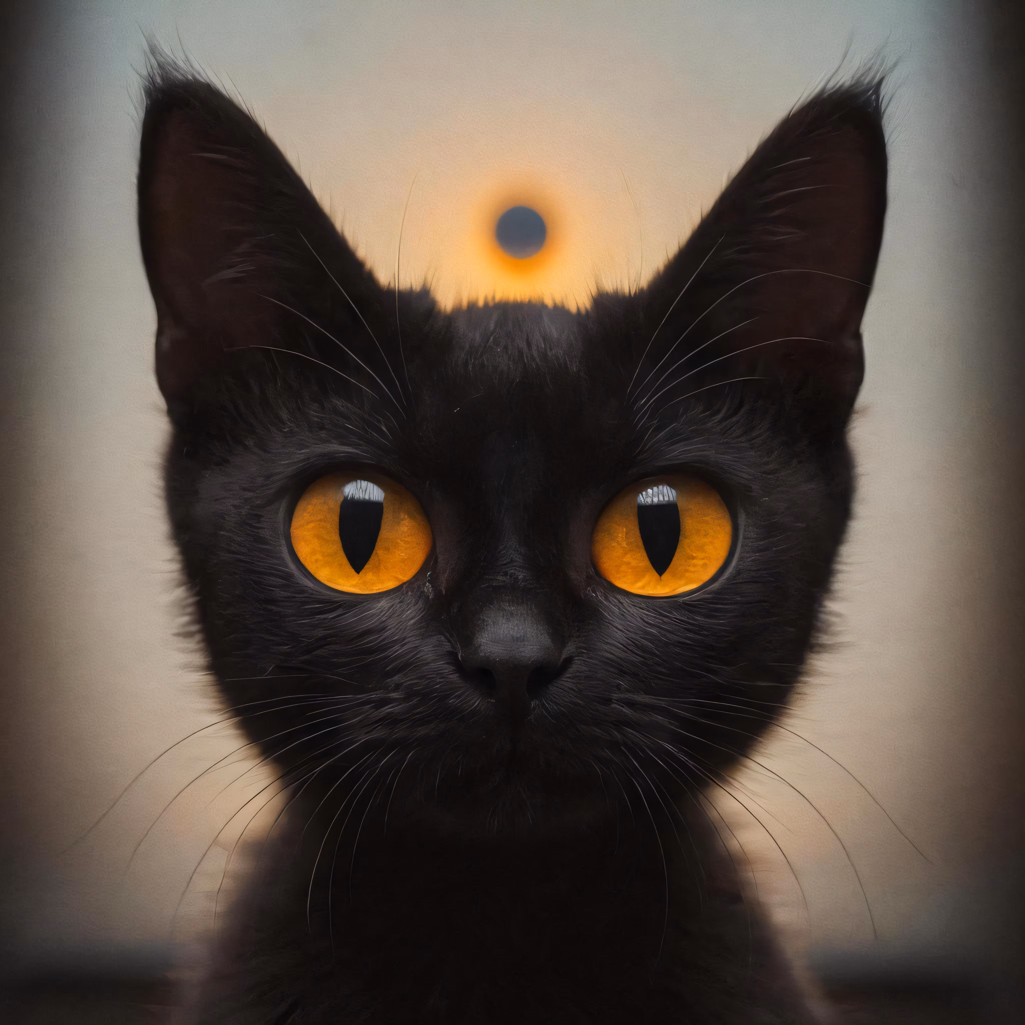 High resolution picture, free to use, a black cat with yellow eyes staring at the camera
