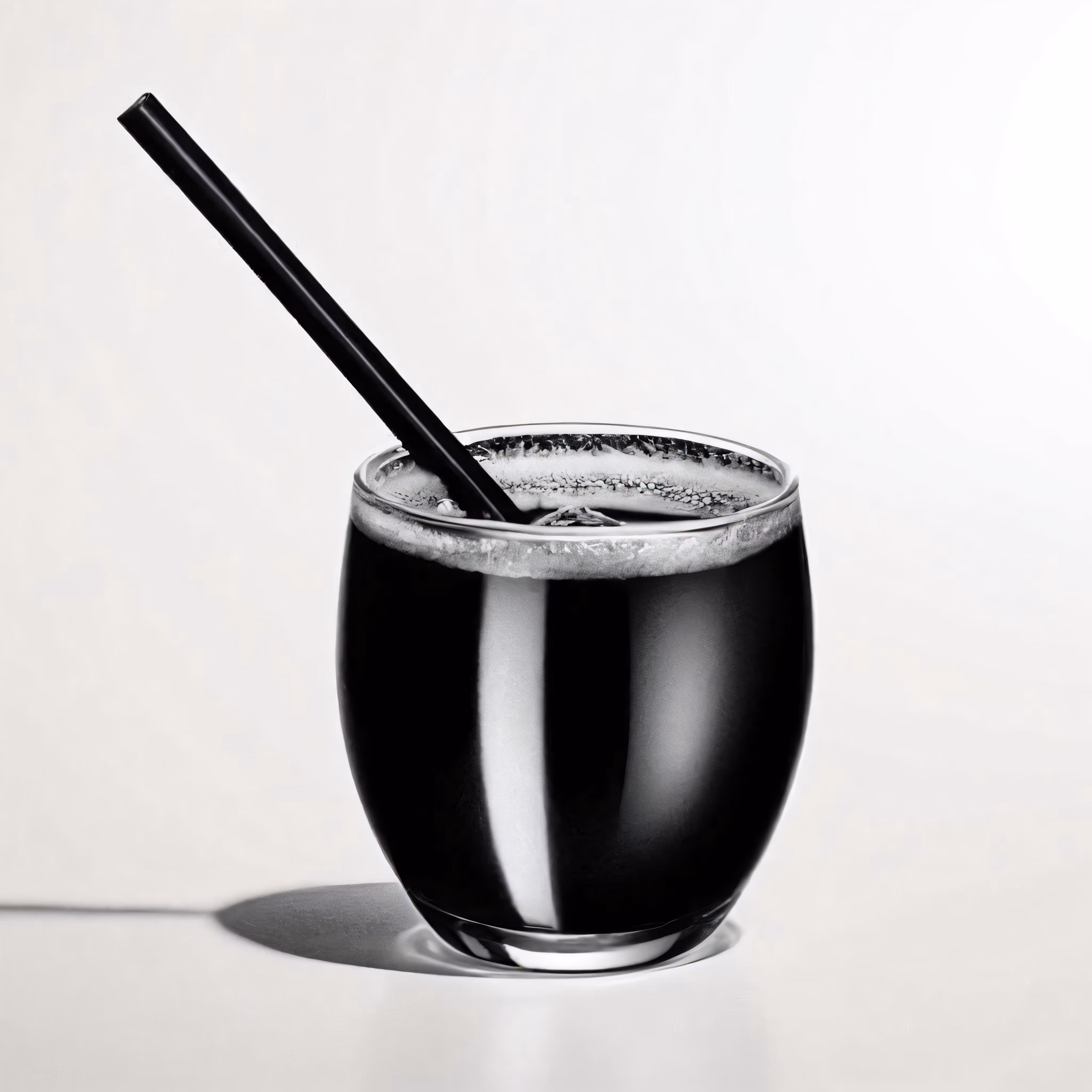 High resolution picture, free to use, a black cocktail is sitting in a wine glass