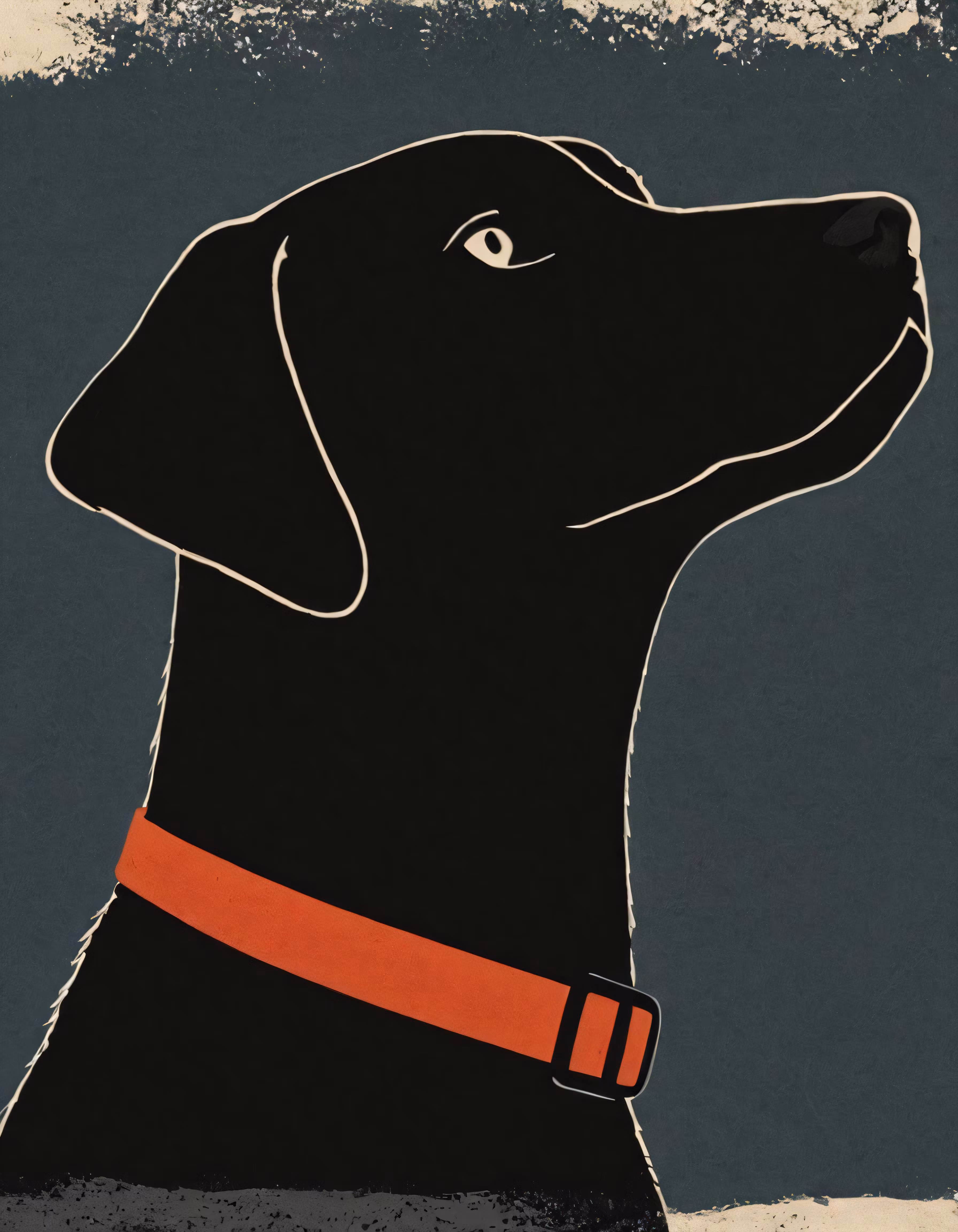 High resolution picture, free to use, a black dog on a red collar standing next to a black background