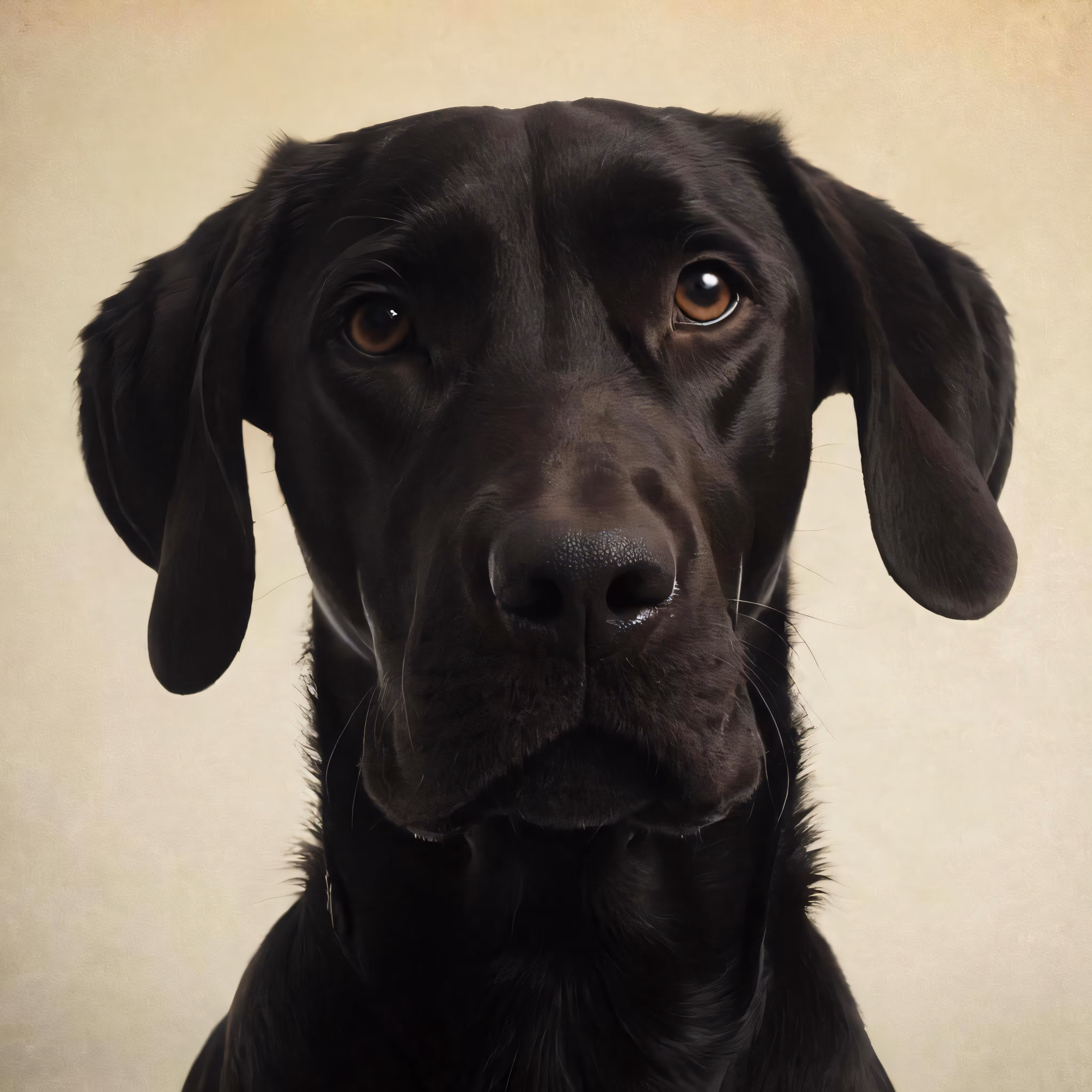High resolution picture, free to use, a black dog with a sad look on his face