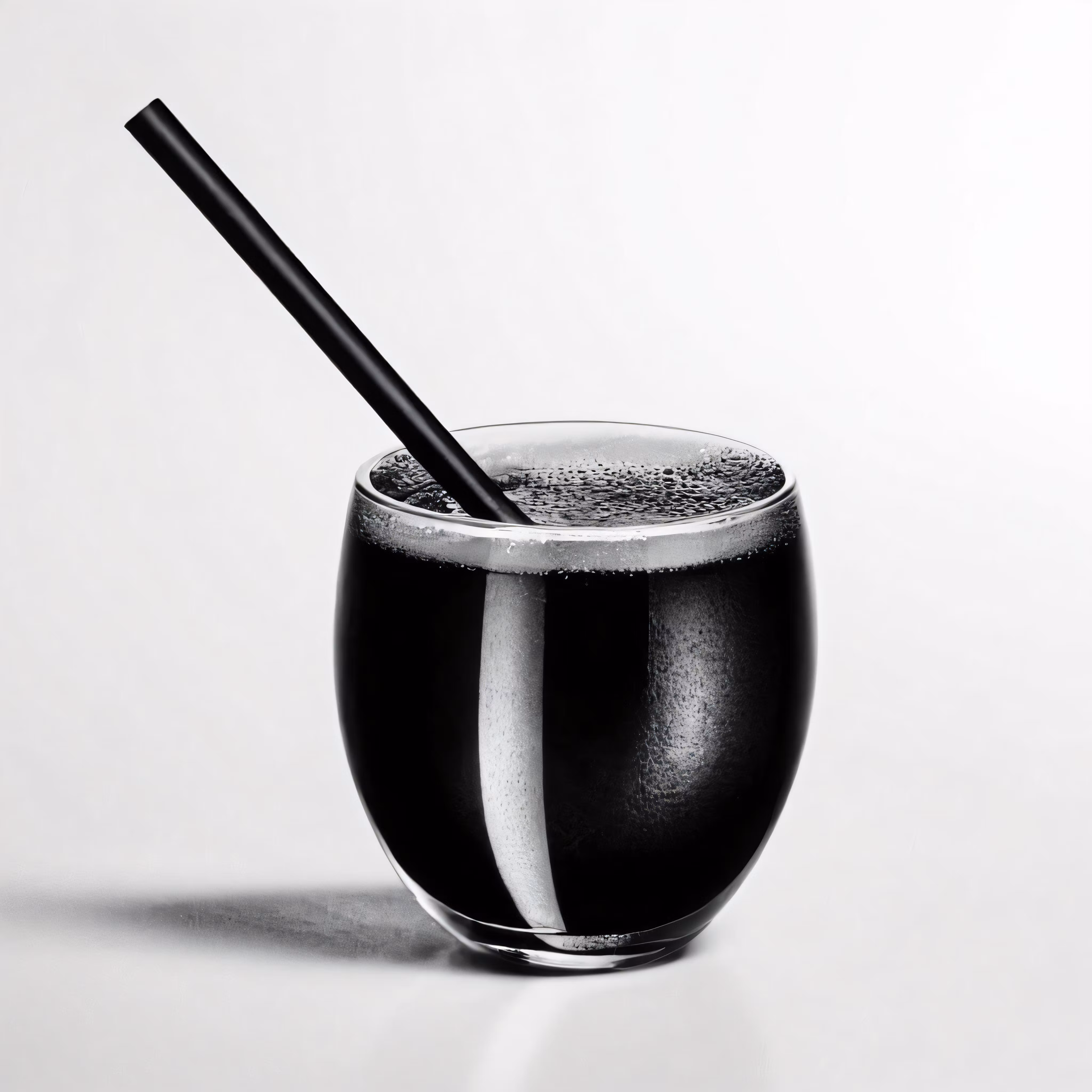High resolution picture, free to use, a black glass with a straw is sitting on the table