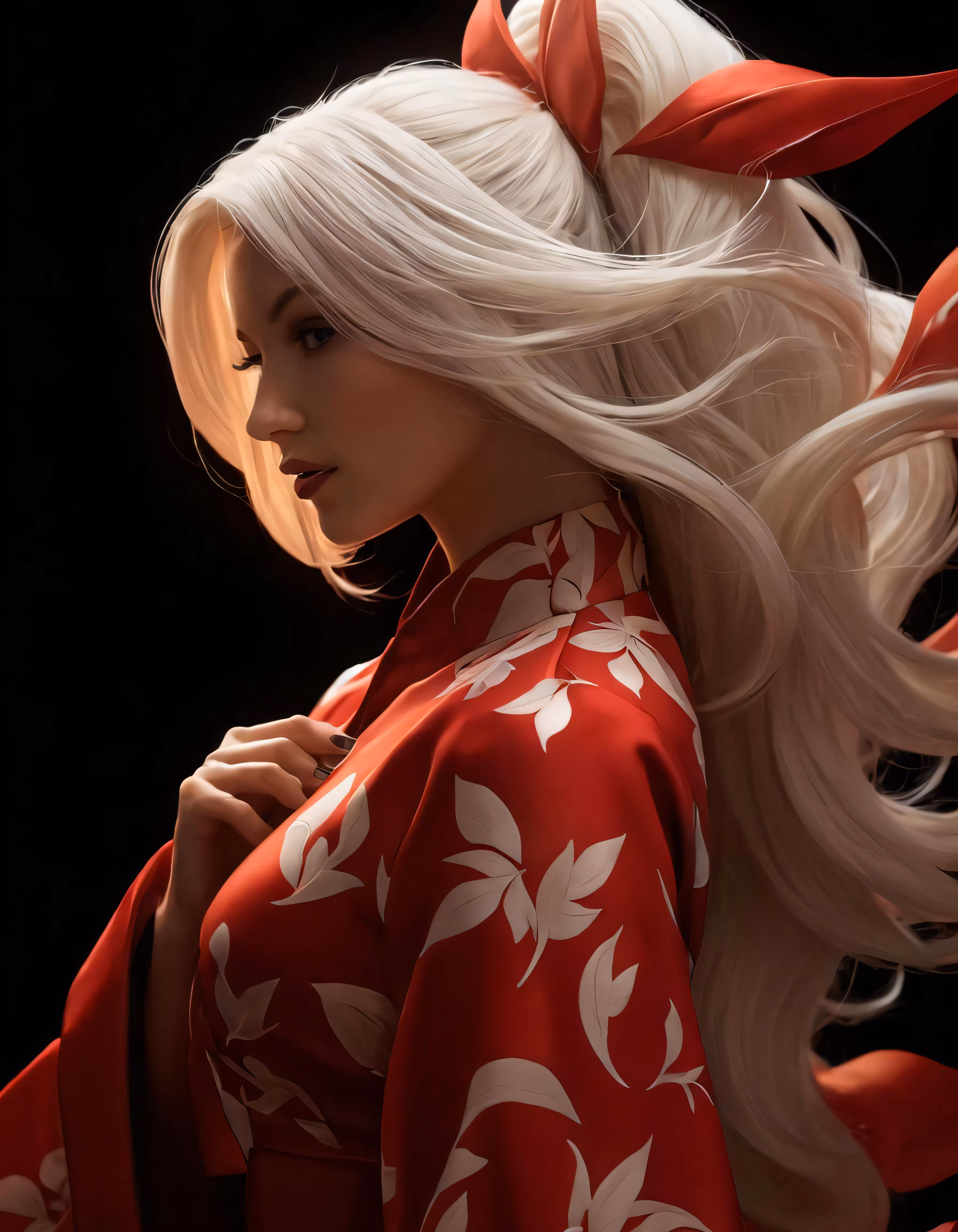 High resolution picture, free to use, a blond girl in red and white with long white hair