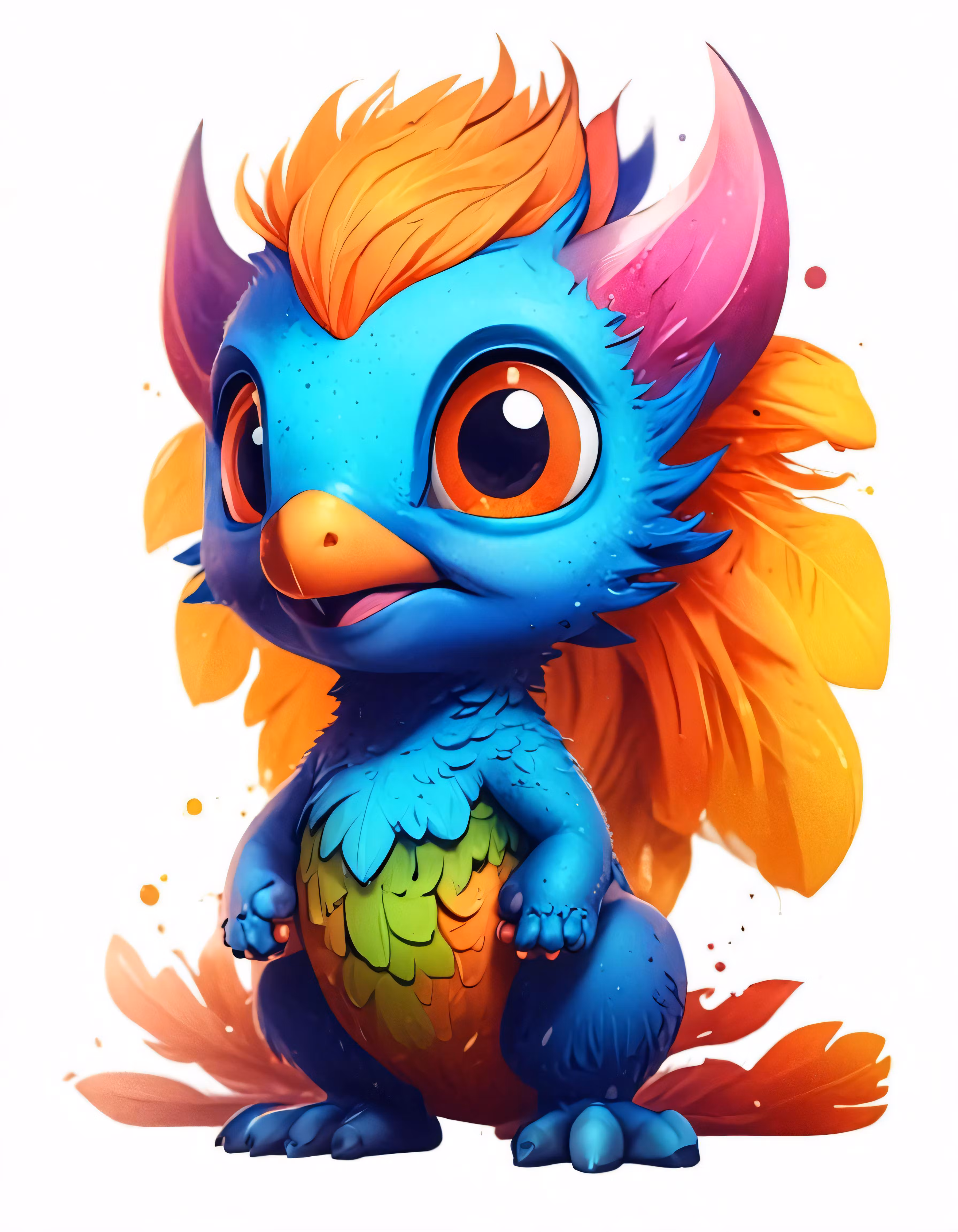 High resolution picture, free to use, a blue bird with orange, orange, and green feathers