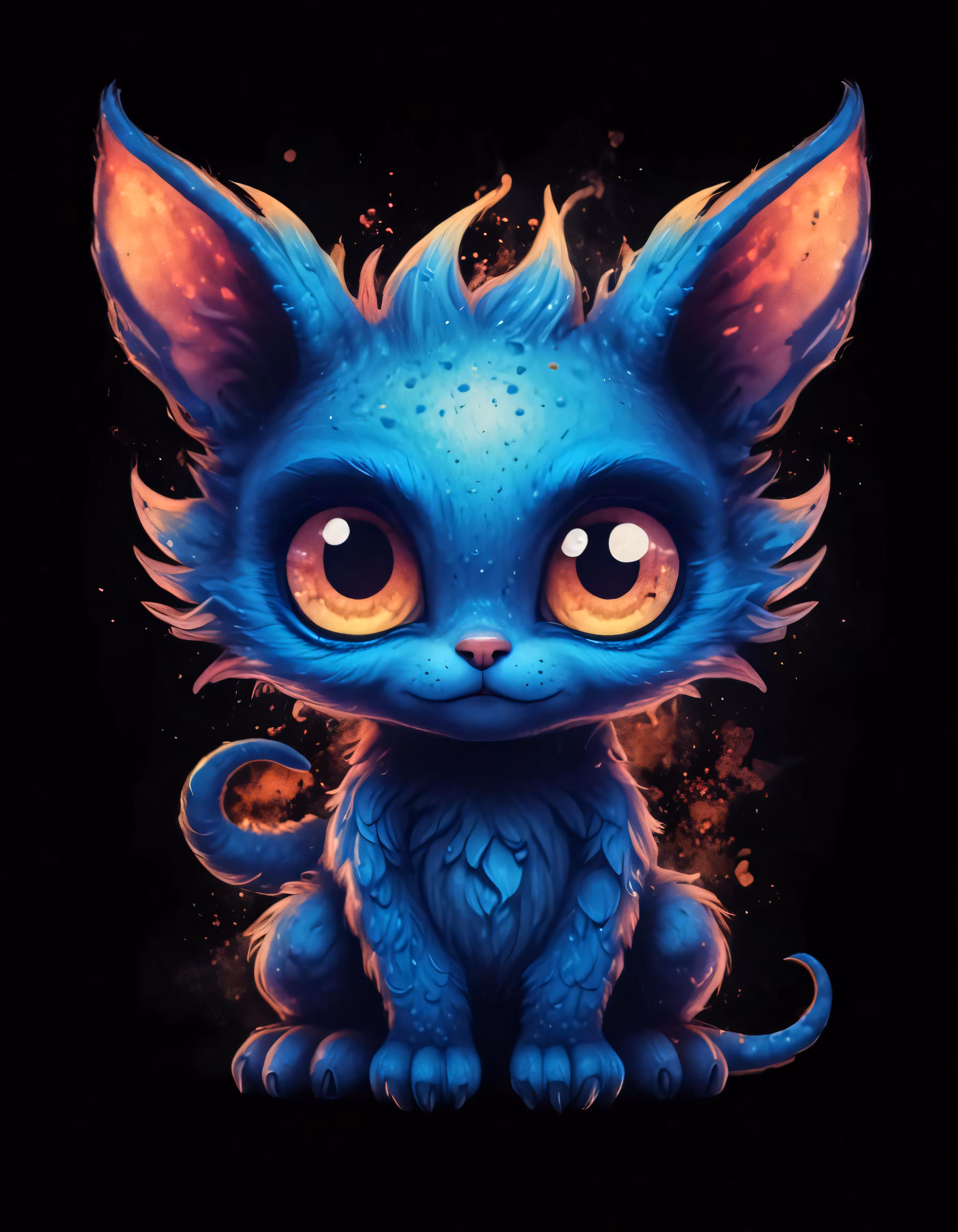 High resolution picture, free to use, a blue cat is sitting with glowing eyes