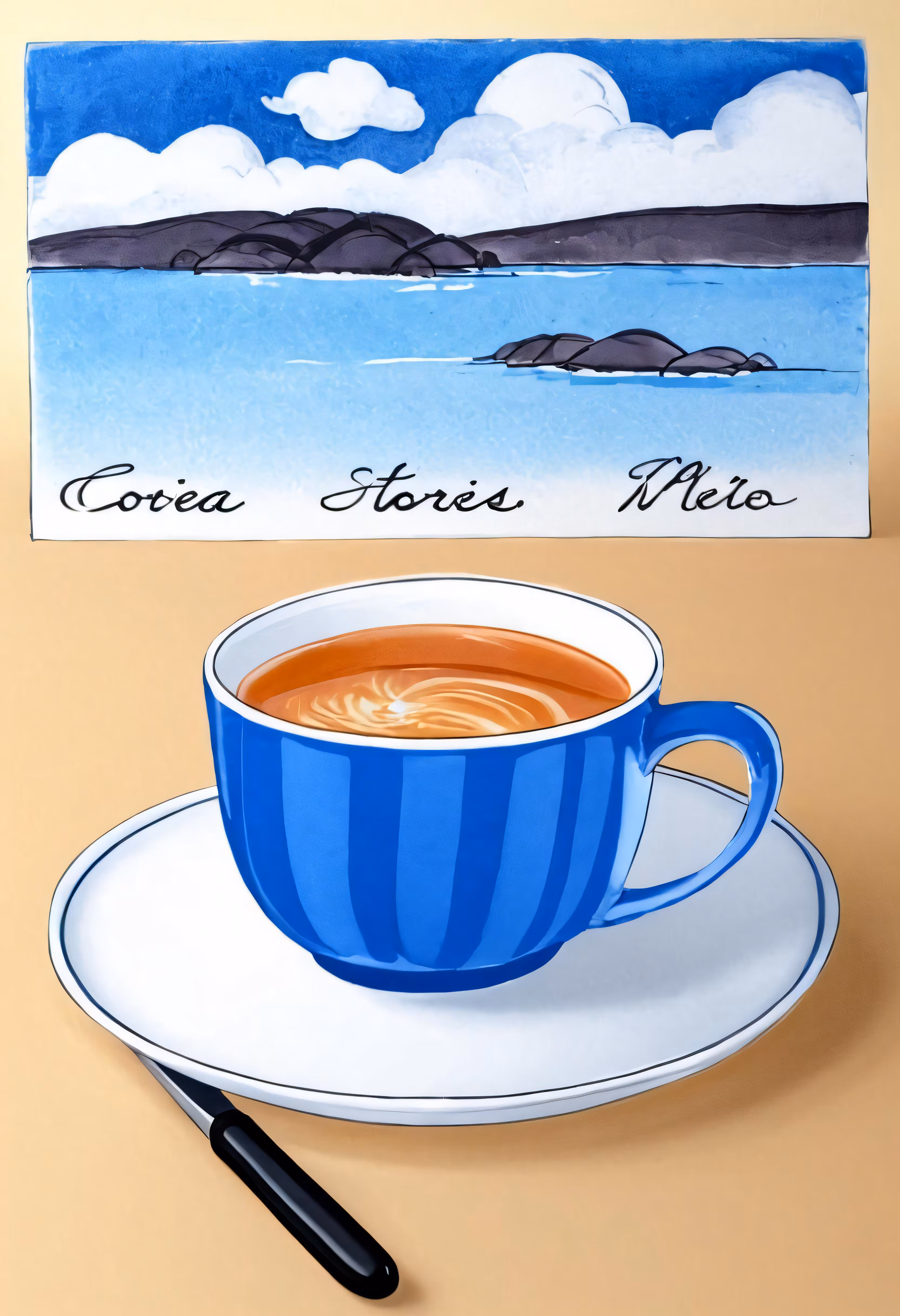High resolution picture, free to use, a blue coffee cup with black saucer sitting on top of a plate