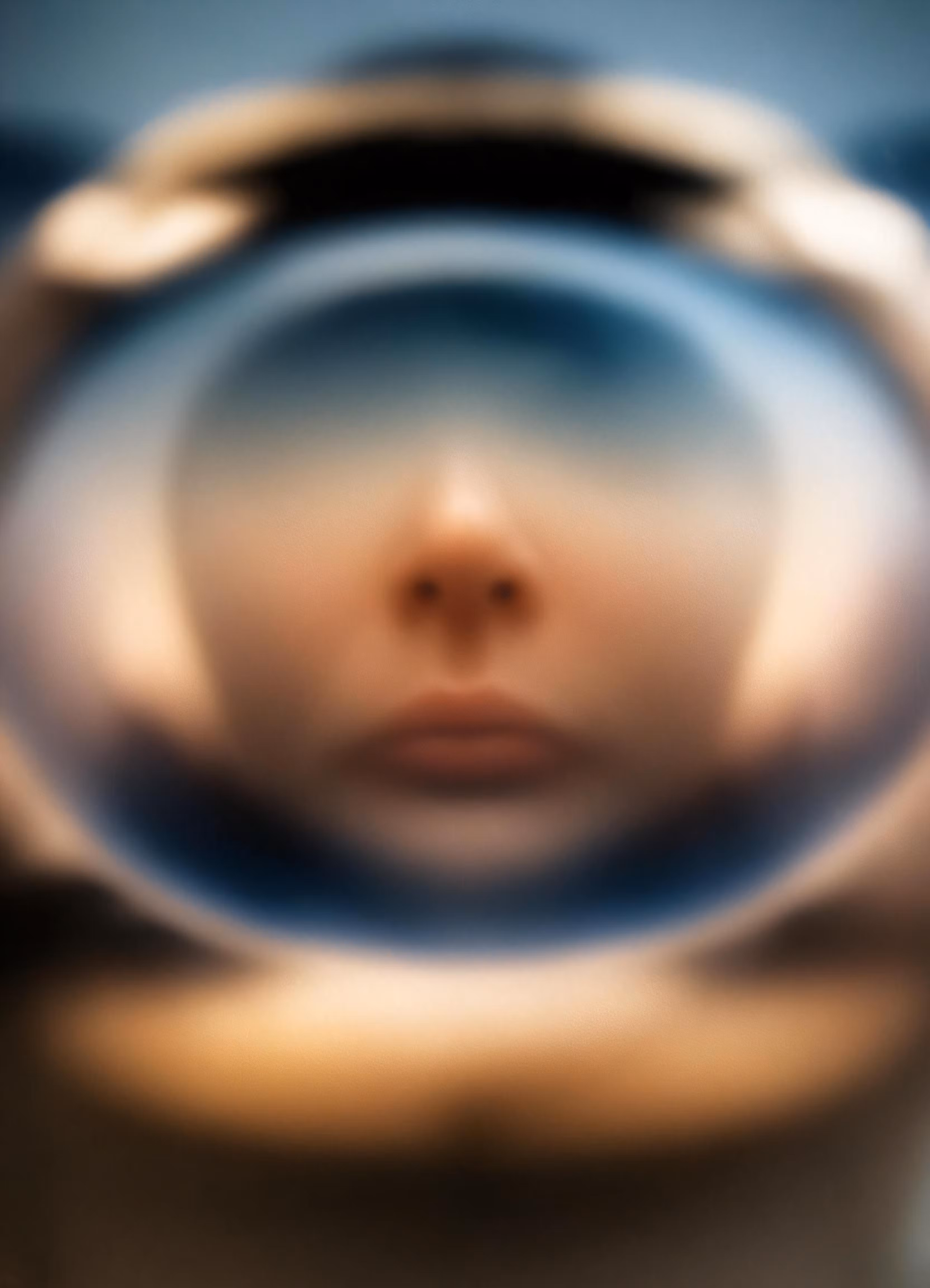 High resolution picture, free to use, a blurry photograph shows the front and back of a face