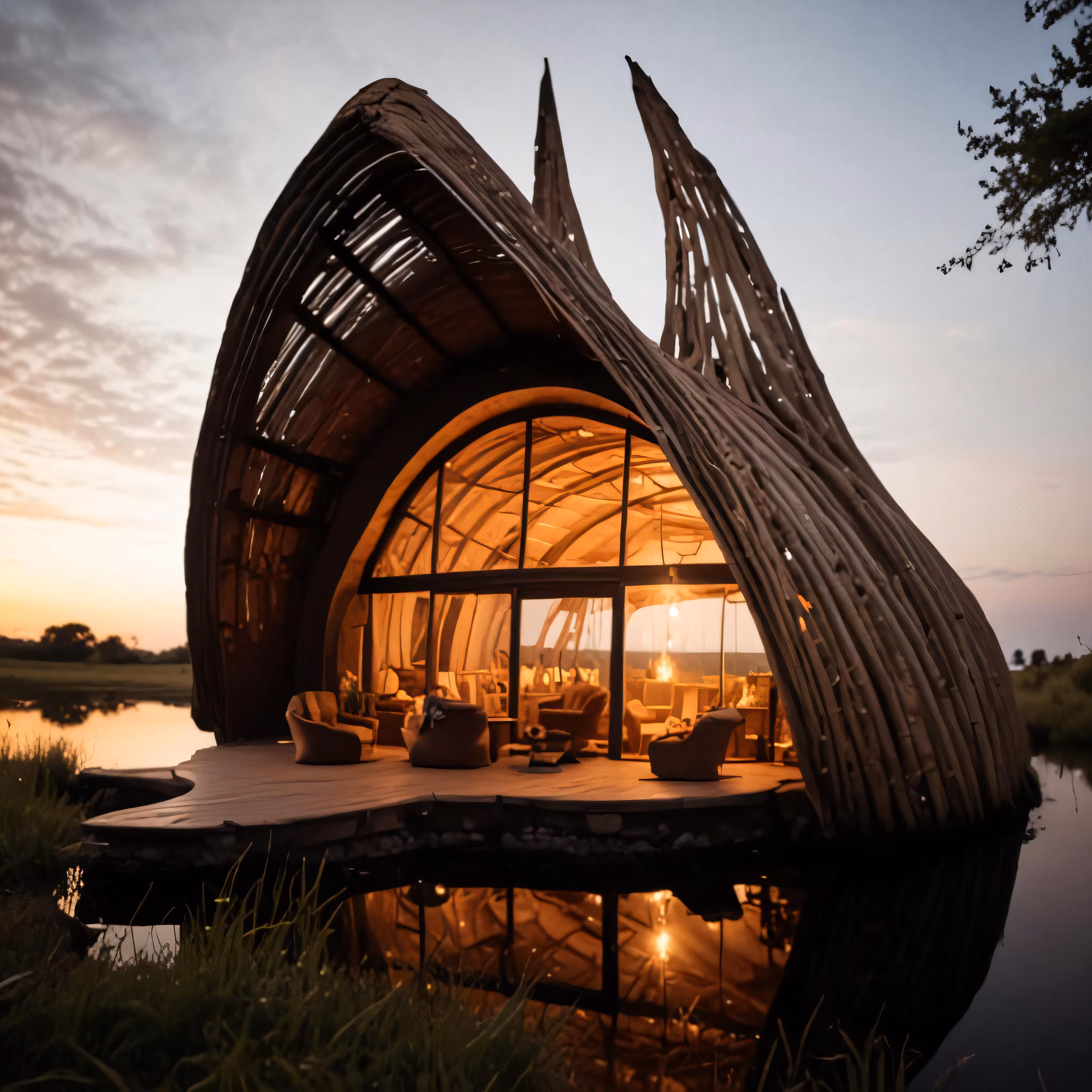 High resolution picture, free to use, a boathouse with open roof on the shore