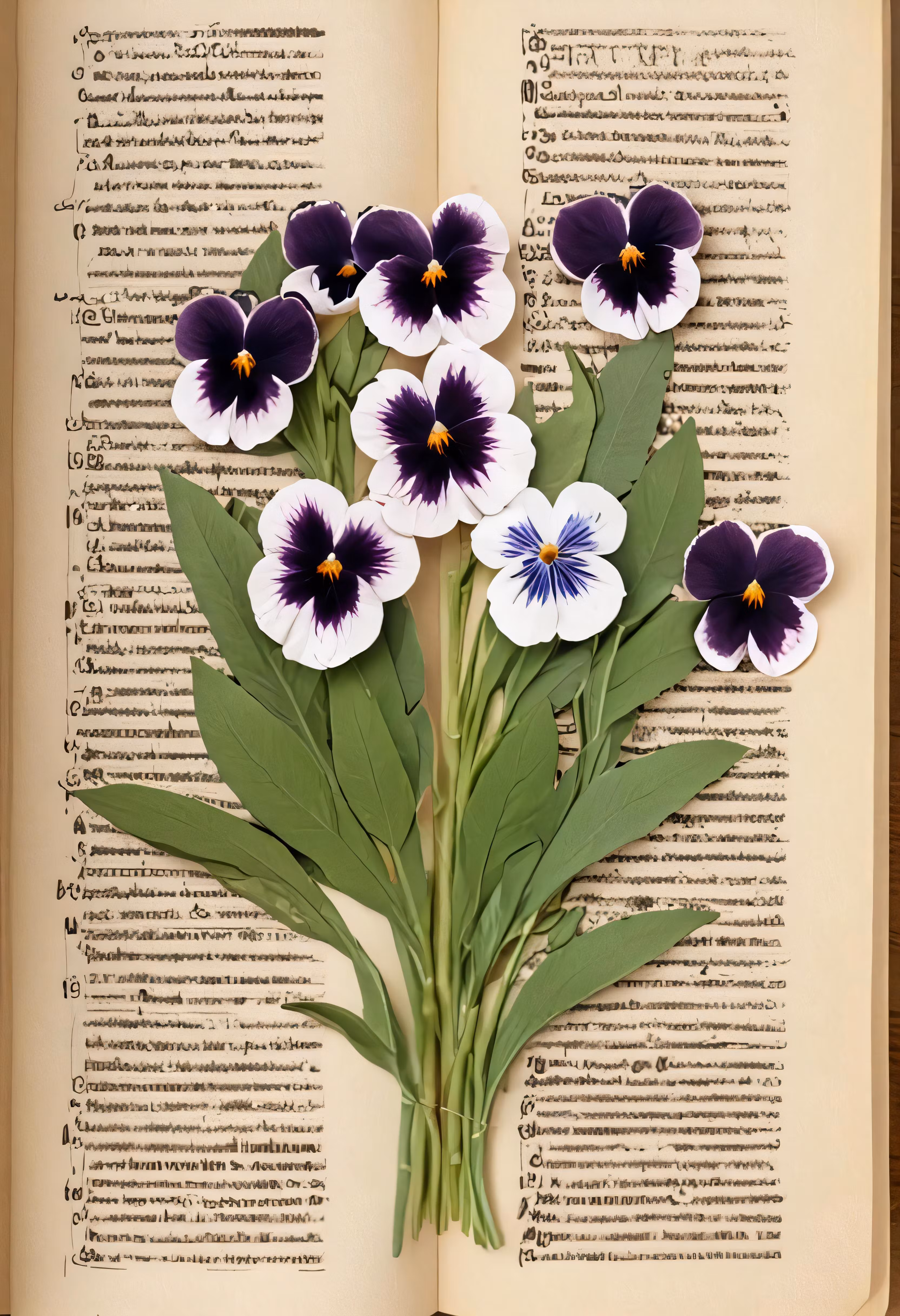 High resolution picture, free to use, a book with pages that have an open page and flowers in it