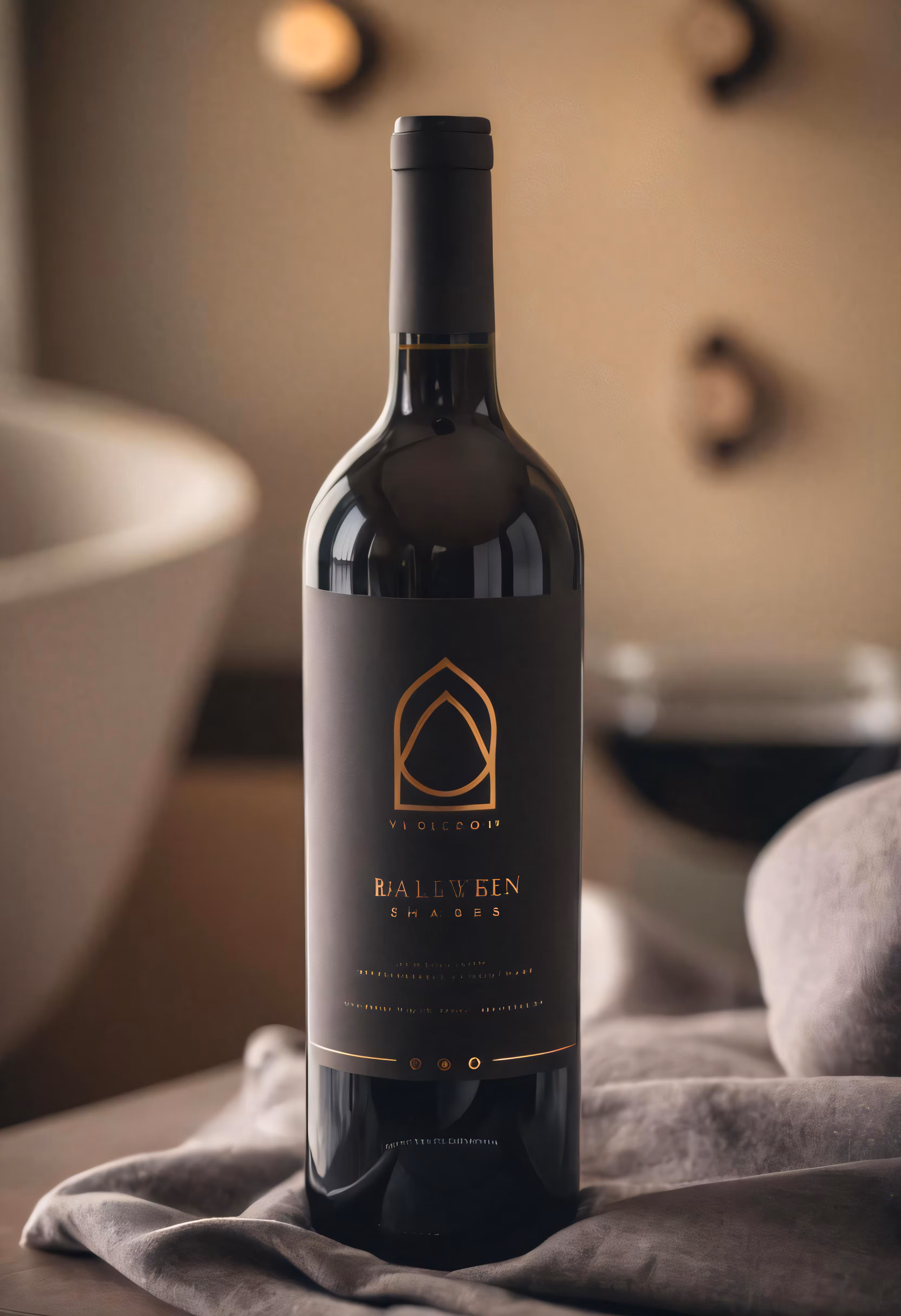 High resolution picture, free to use, a bottle of red wine on the table in a dark room