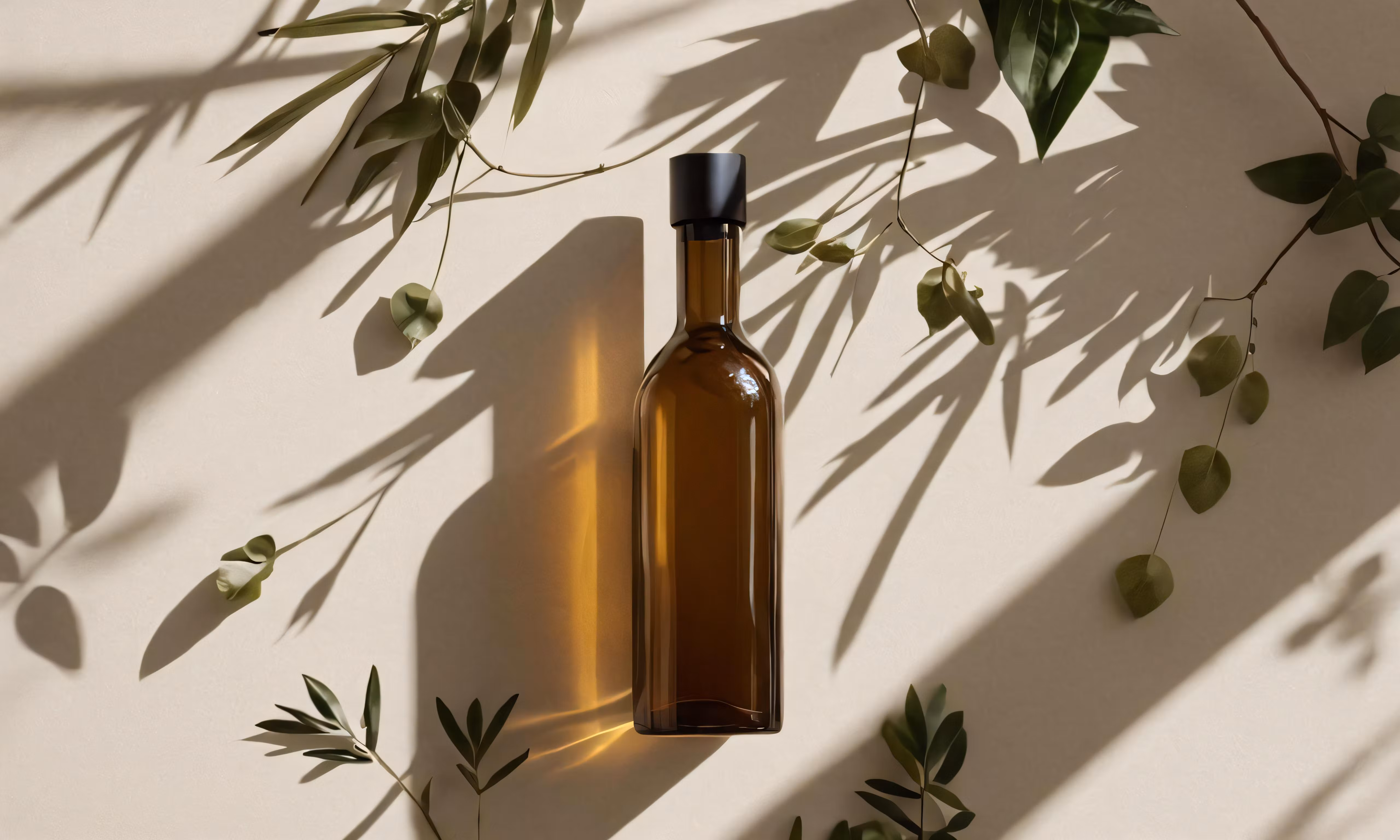 High resolution picture, free to use, a bottle of wine on a shelf near a plant