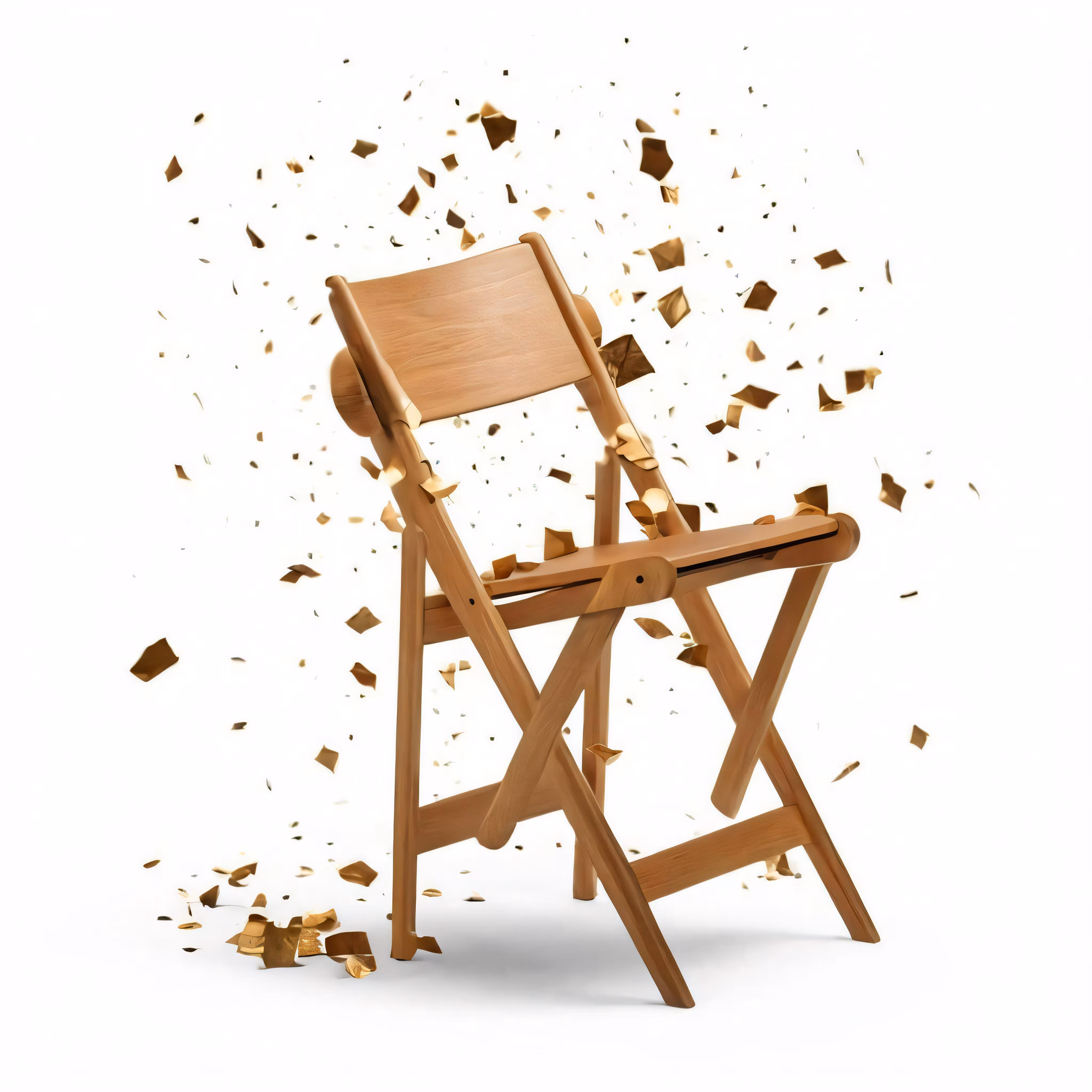 High resolution picture, free to use, a broken wooden chair is sitting in the floor