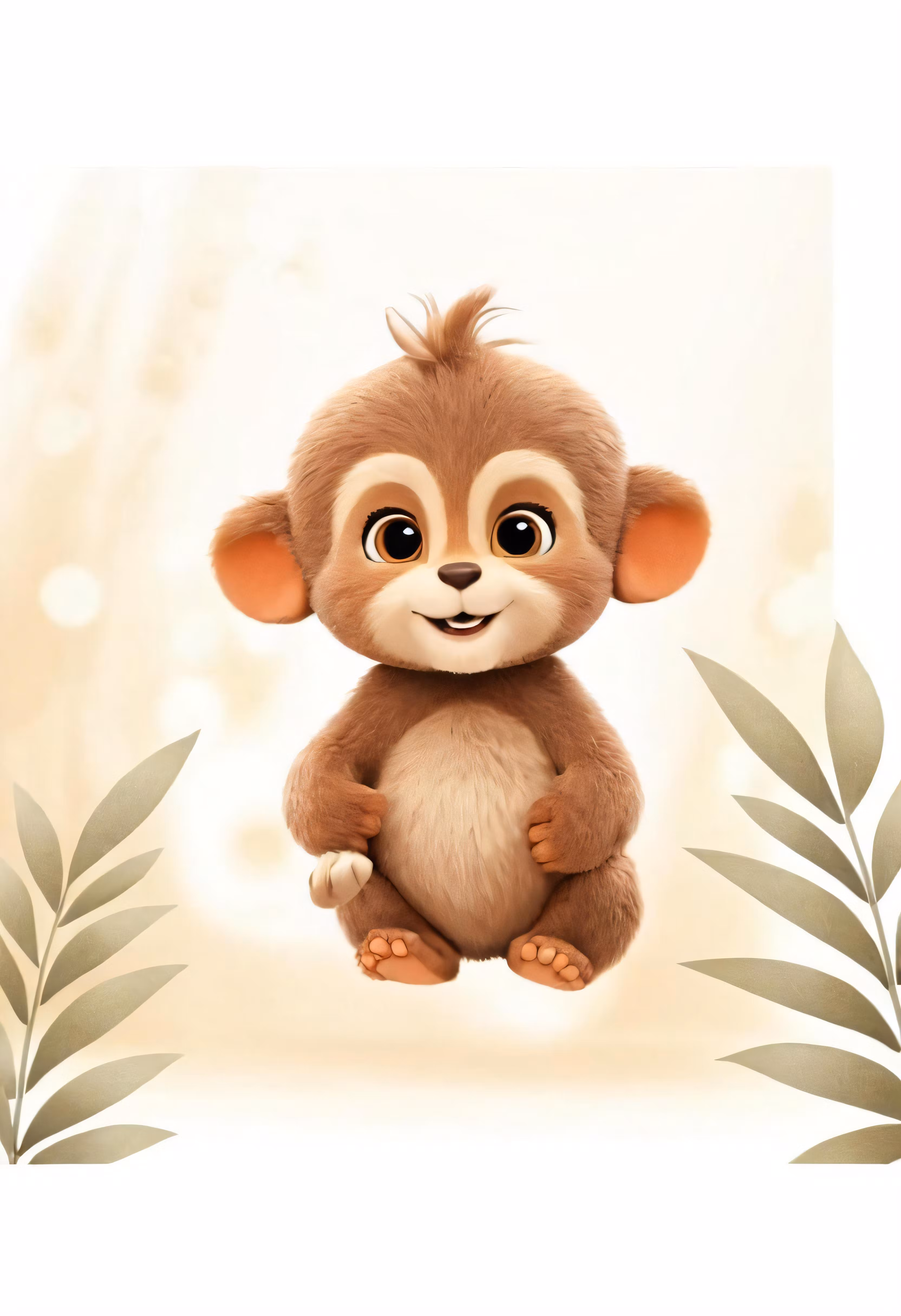 High resolution picture, free to use, a brown monkey sitting in front of a white backdrop