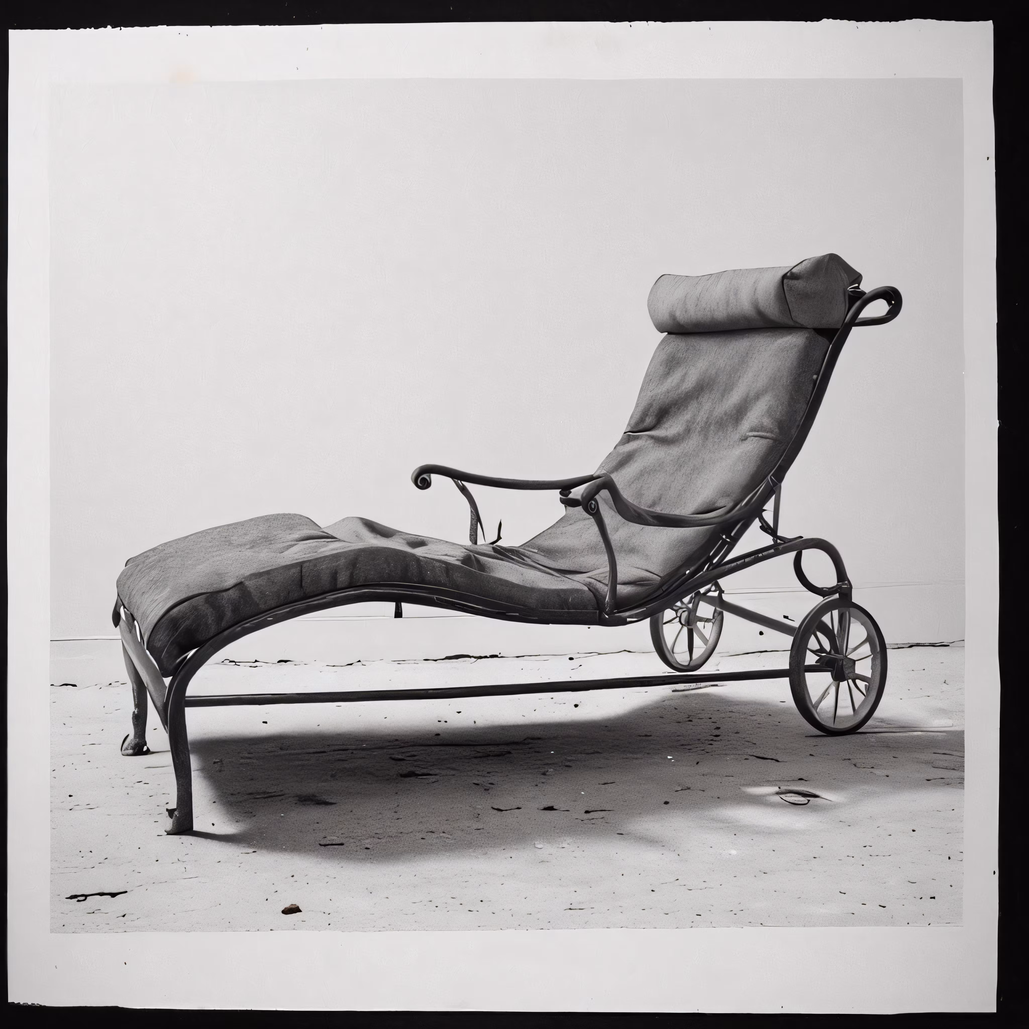 High resolution picture, free to use, a buggy with wheels attached to it and an ottoman on one leg