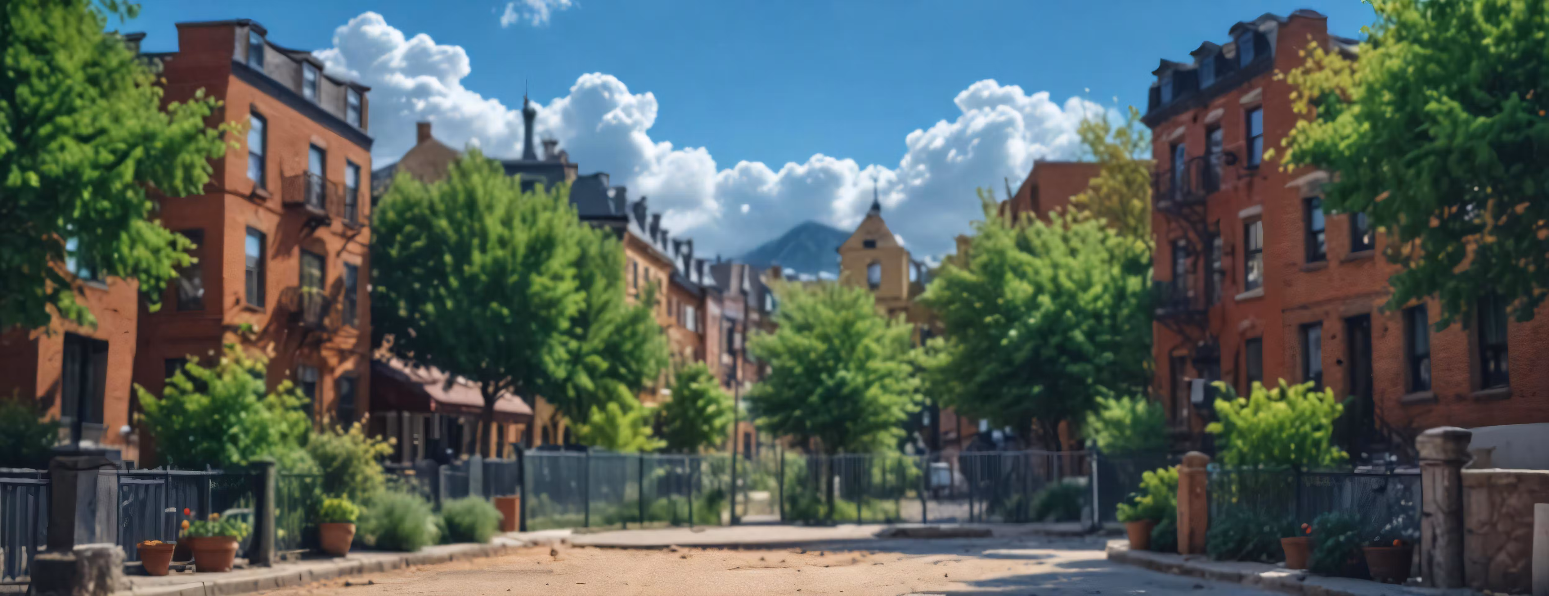 High resolution picture, free to use, a bunch of buildings and a lot of trees and bushes