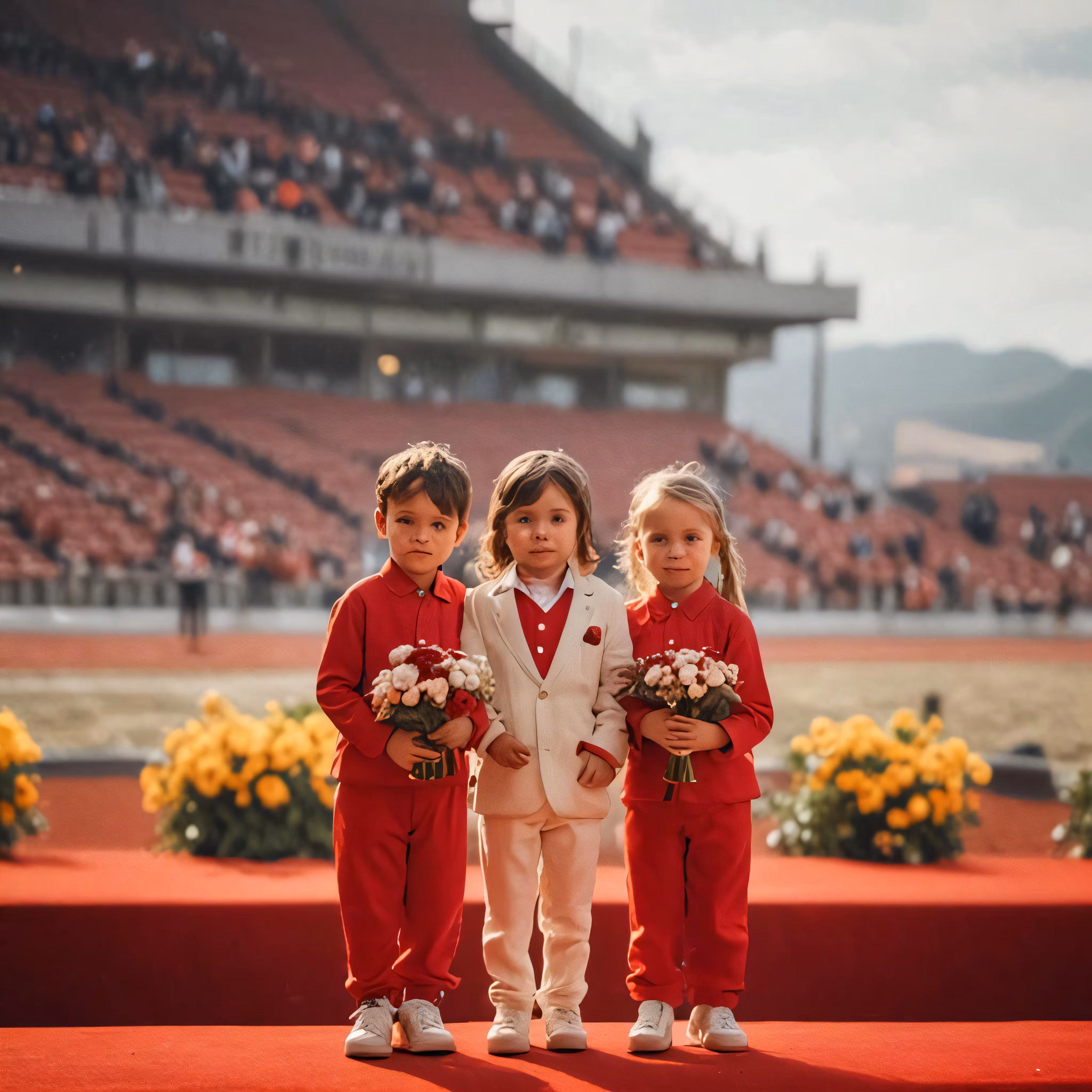 High resolution picture, free to use, a bunch of kids wearing red and white outfits