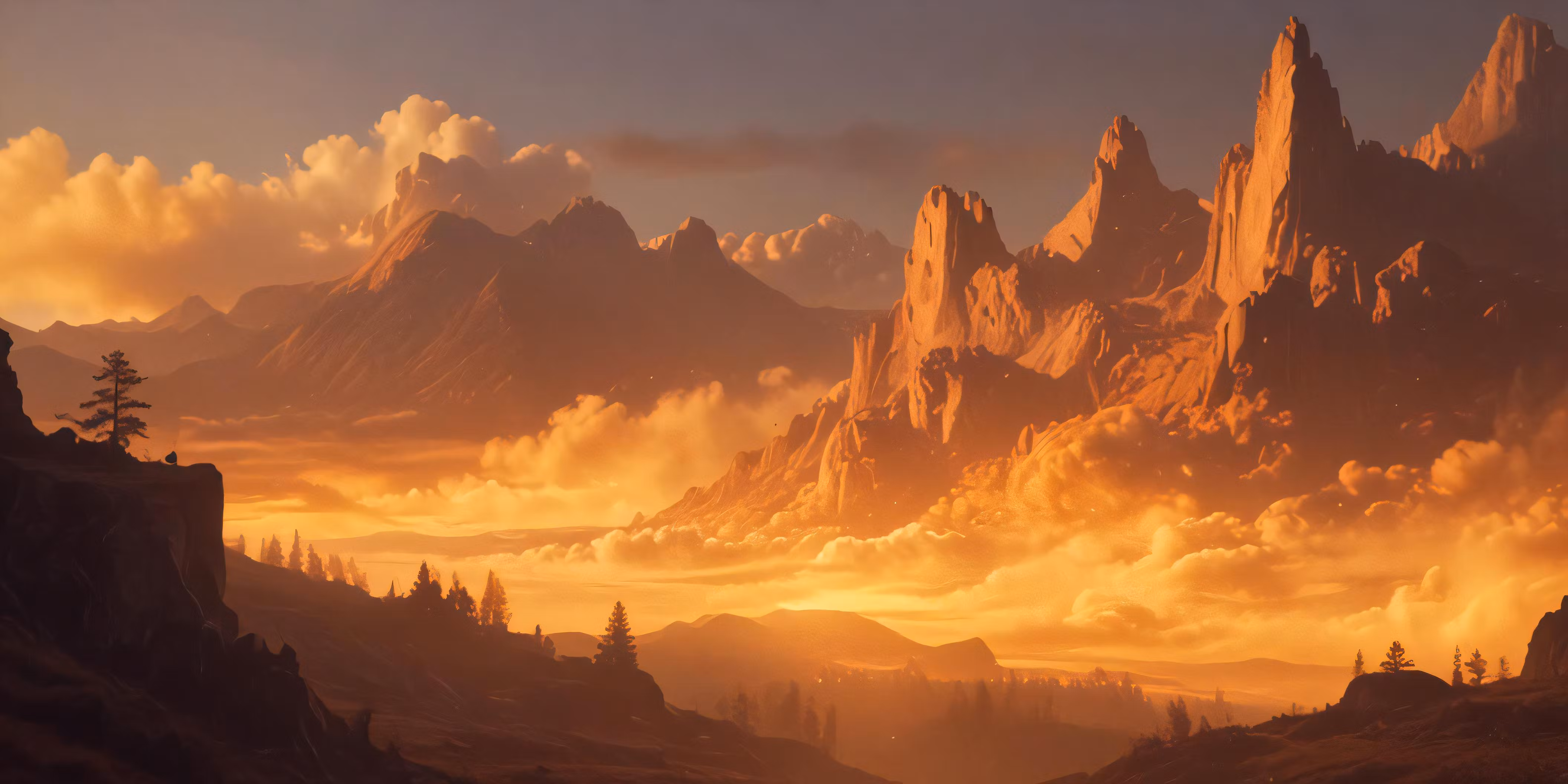 High resolution picture, free to use, a bunch of mountains are visible in the sunset