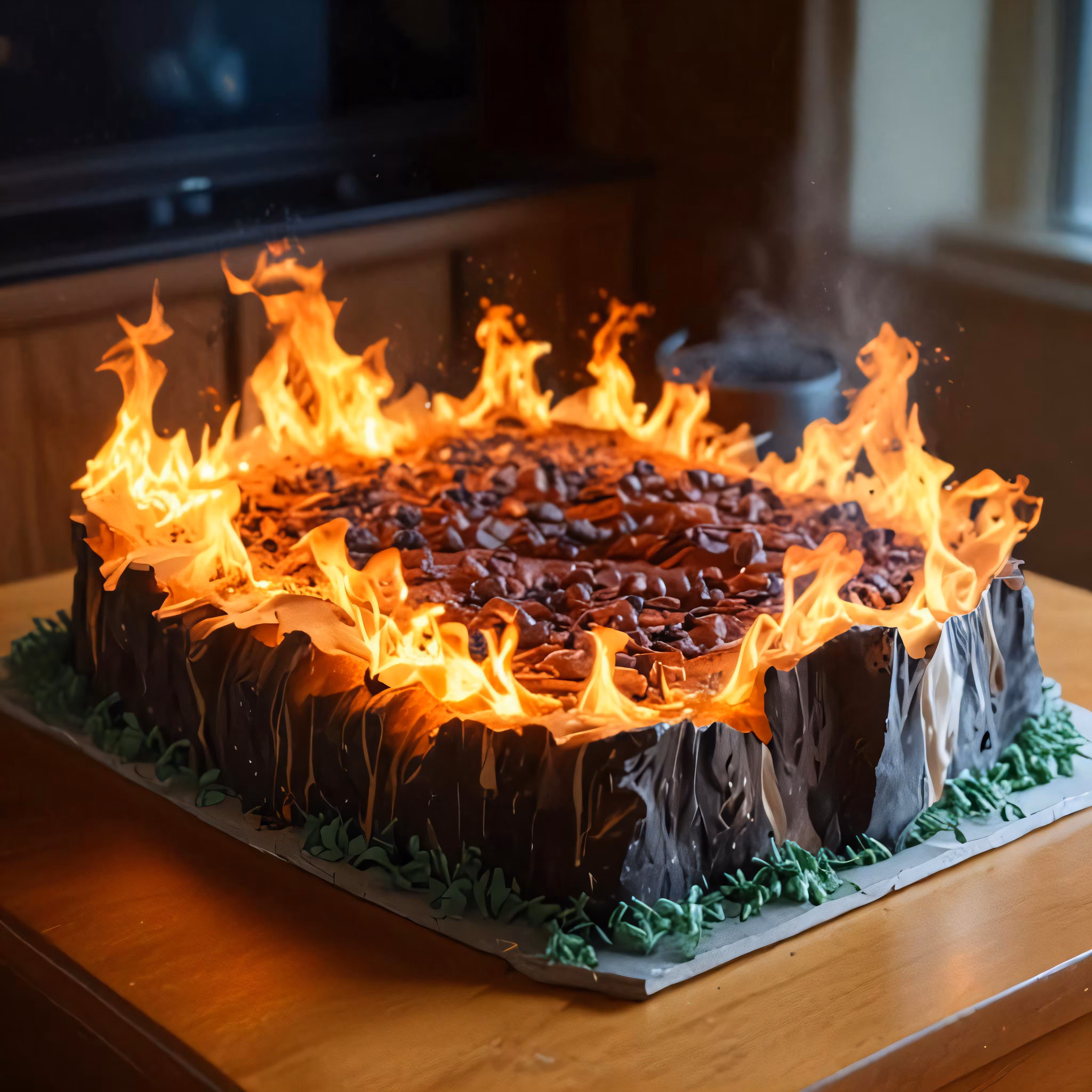 High resolution picture, free to use, a cake on top of a wooden table covered in frosting