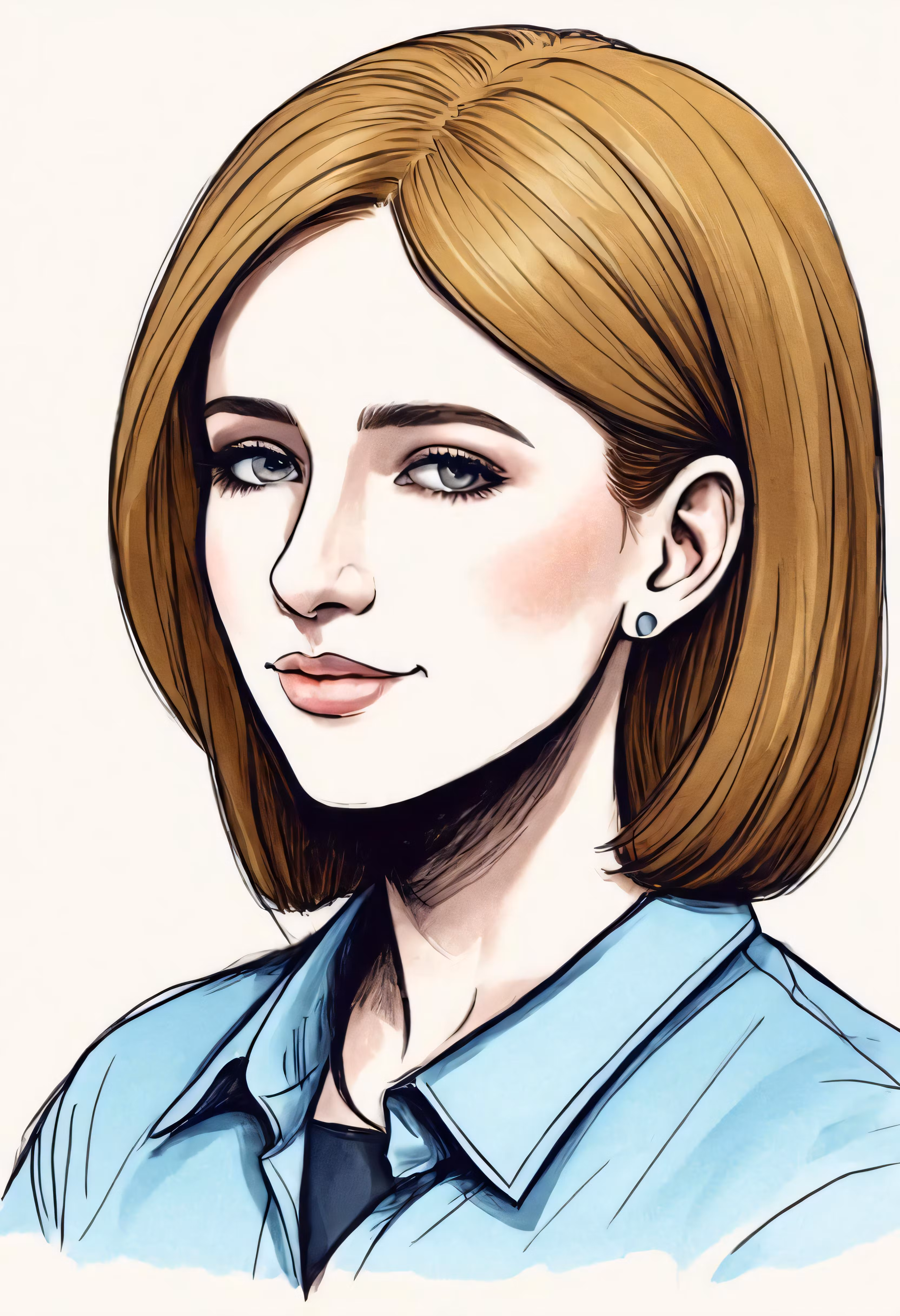 High resolution picture, free to use, a caricature of a girl in a dress shirt and tie