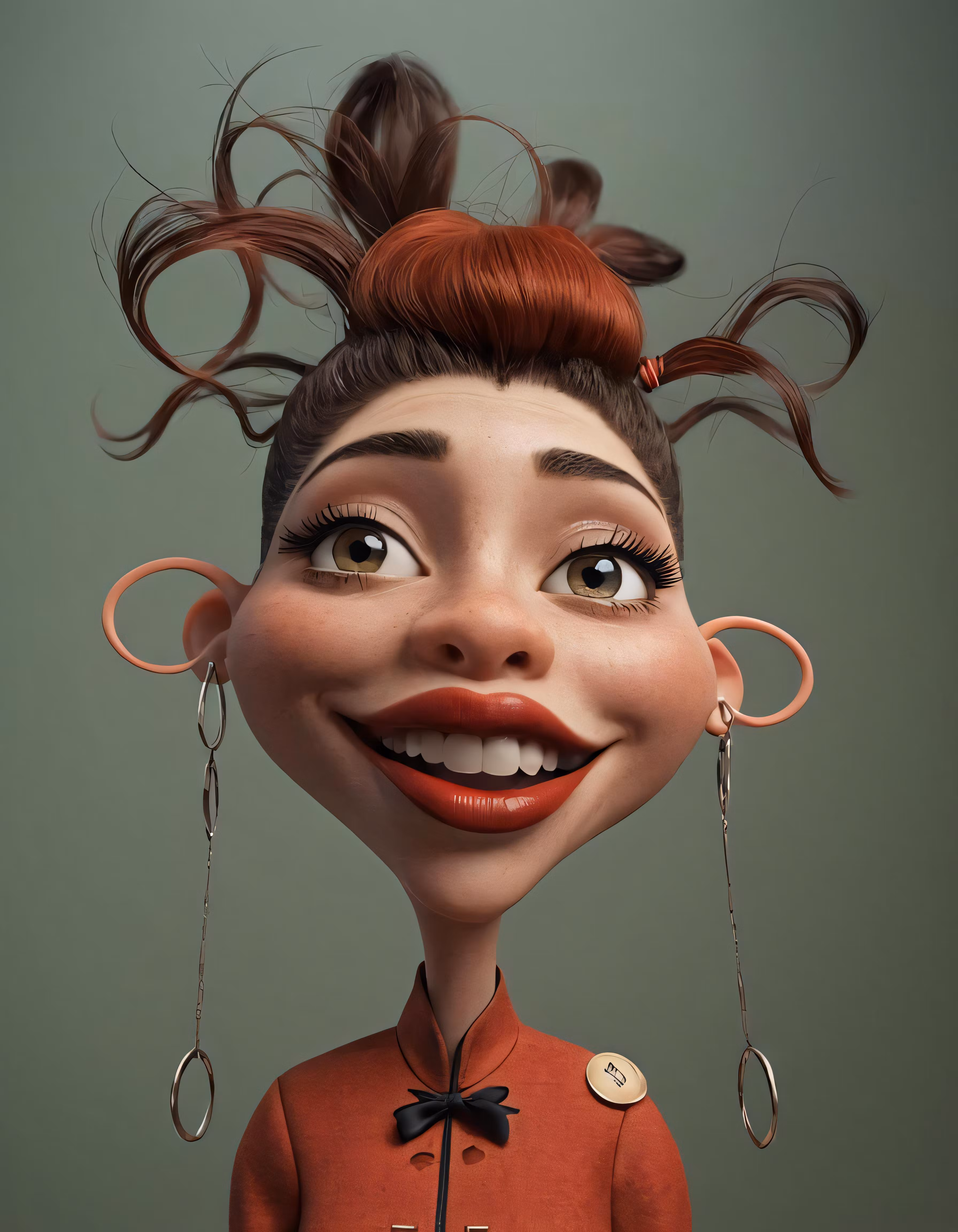 High resolution picture, free to use, a cartoon character wearing earrings and a red coat