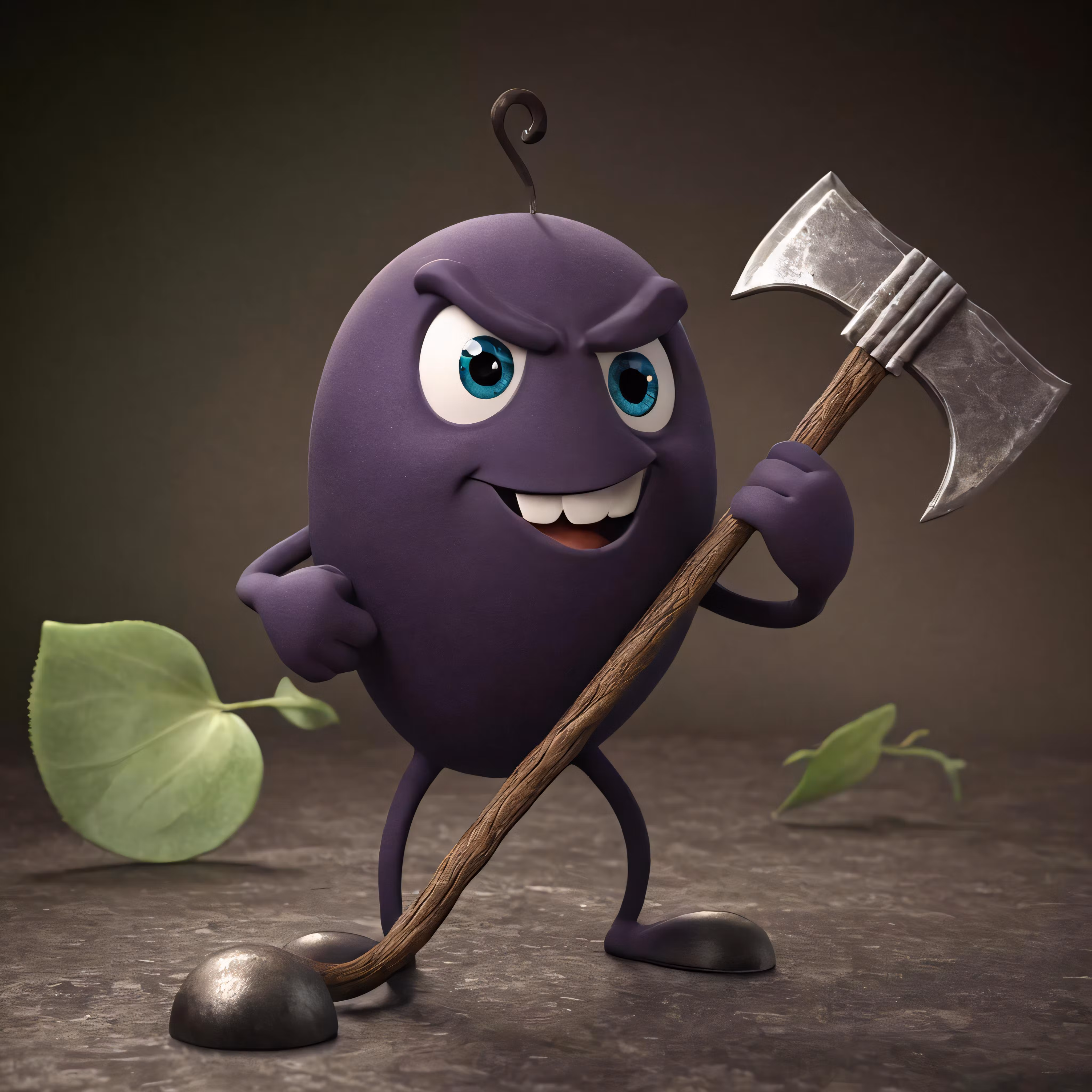 High resolution picture, free to use, a cartoon character with a pickle holding an axue