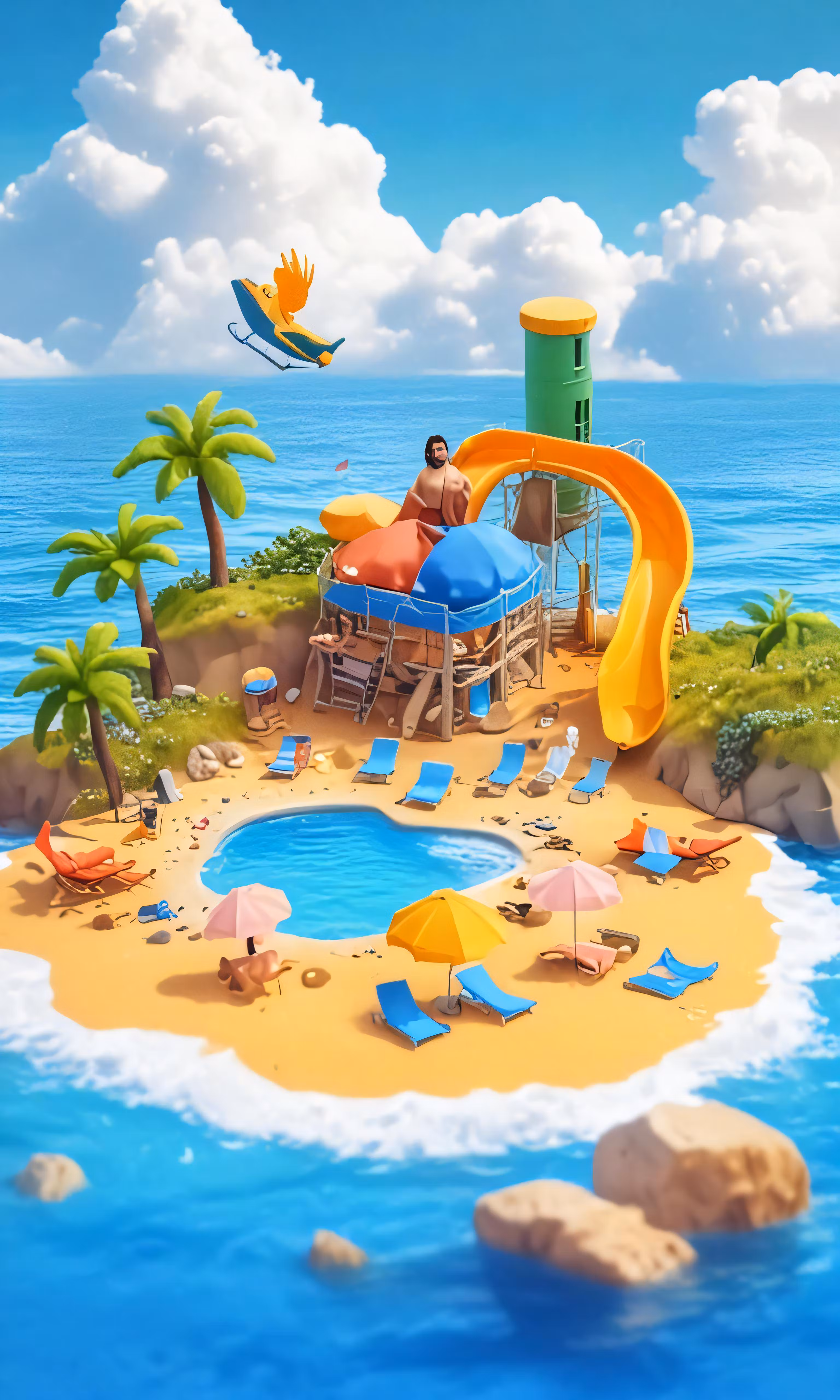 High resolution picture, free to use, a cartoon of a person laying on top of an island