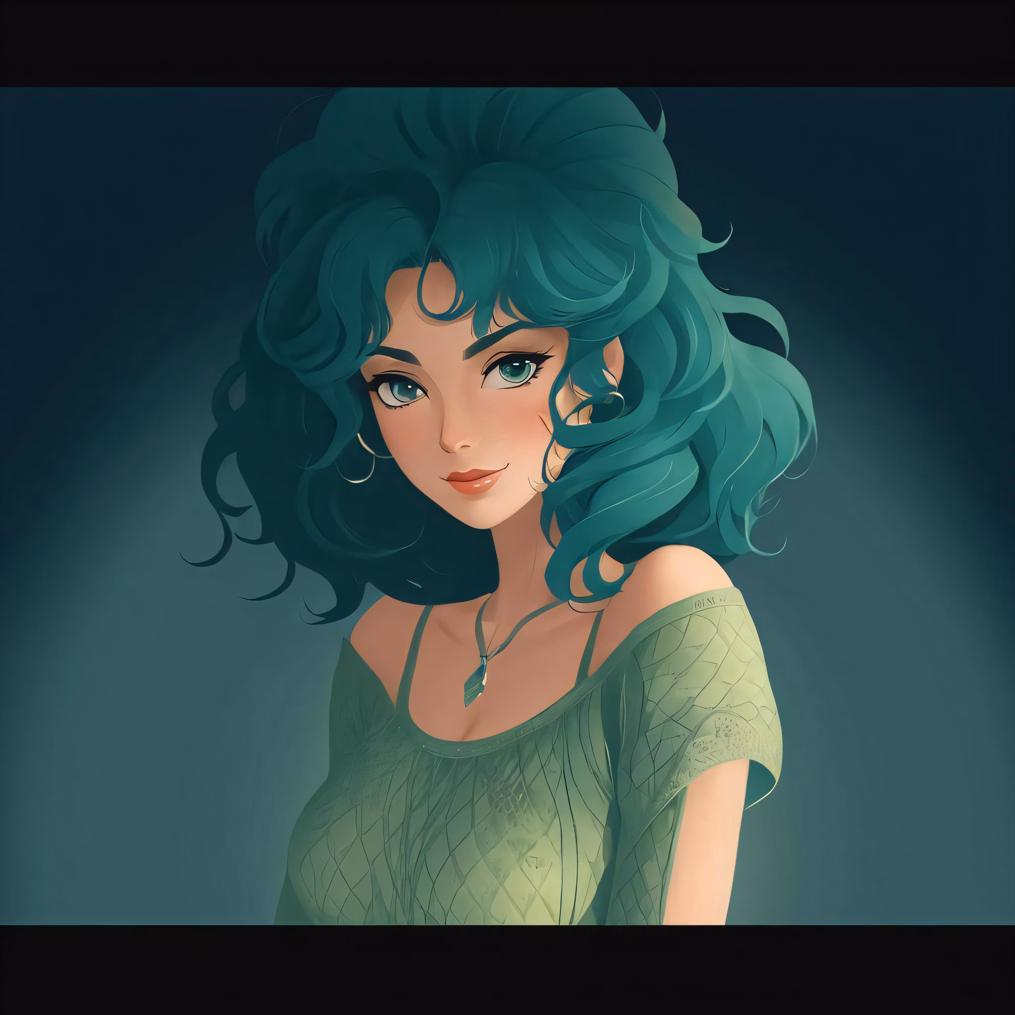 High resolution picture, free to use, a cartoon picture of a lady in a green dress