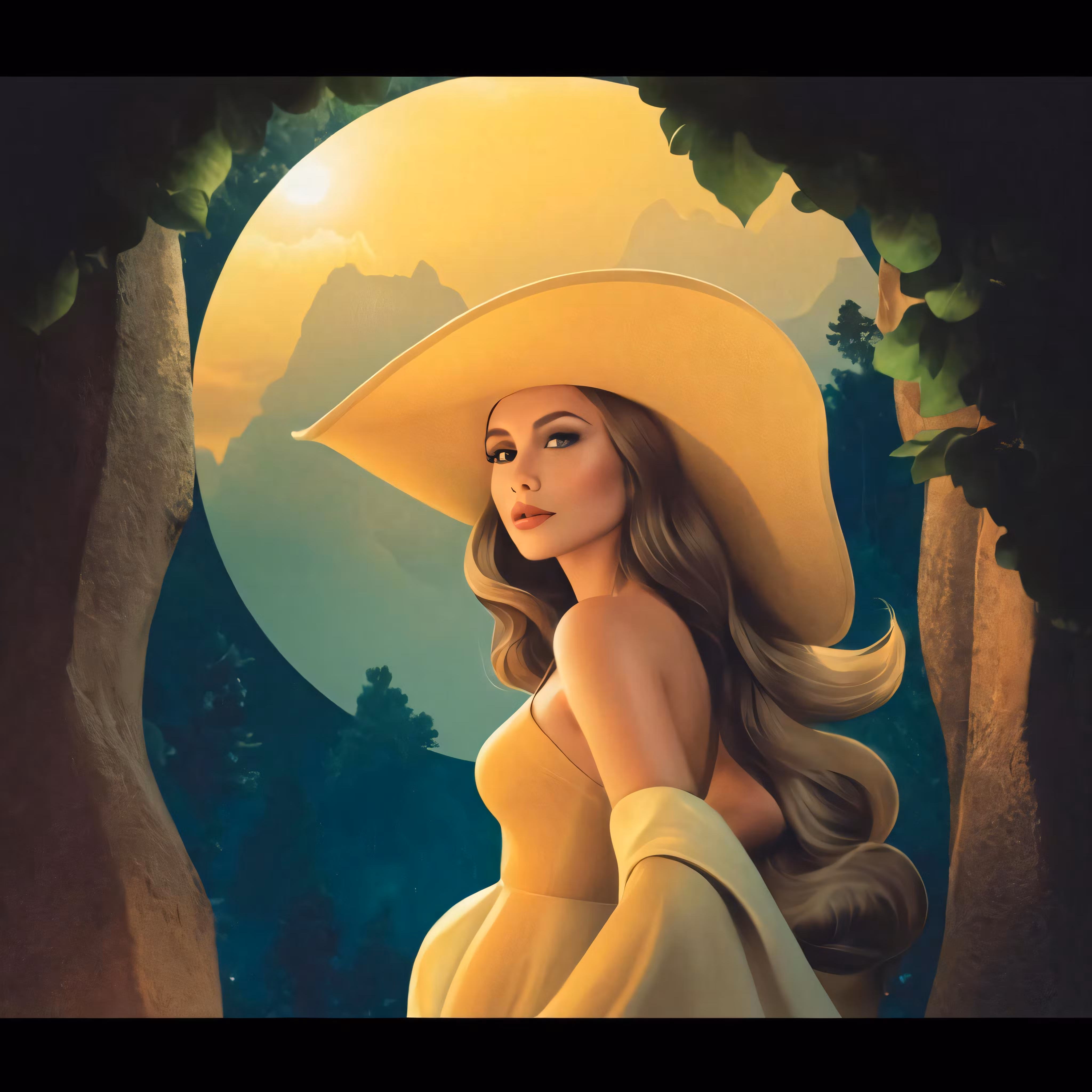 High resolution picture, free to use, a cartoon style woman in yellow dress with yellow hat
